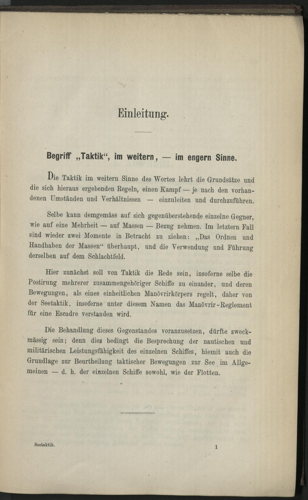 I. Abschnitt. Bedingnisse, welchen ein Escadremanöver-Reglement - die Seetaktik im engern Sinn - zu entsprechen hat.