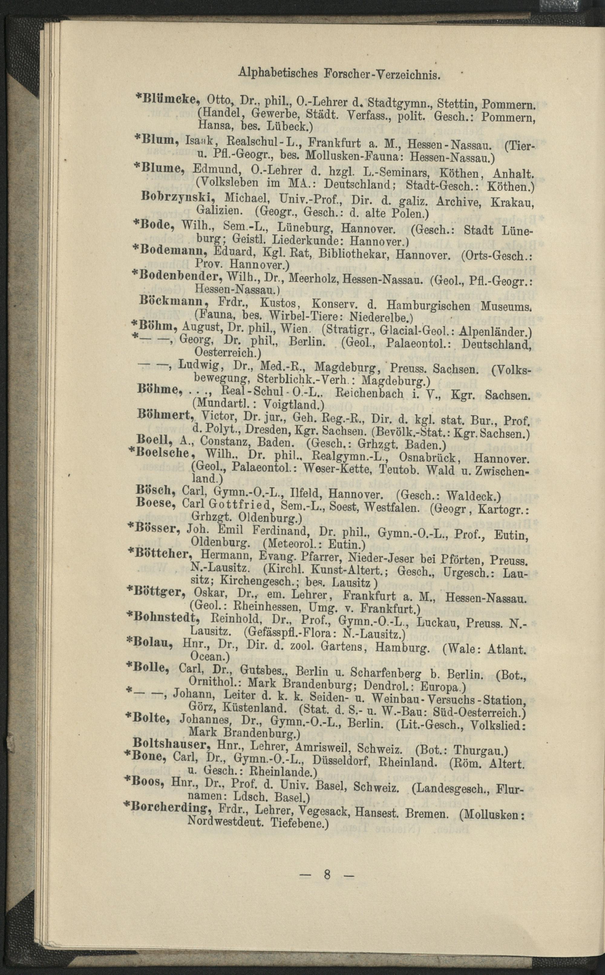 II. Forscher-Verzeichnis nach Land- und Ortschaften alphabetische geordnet.