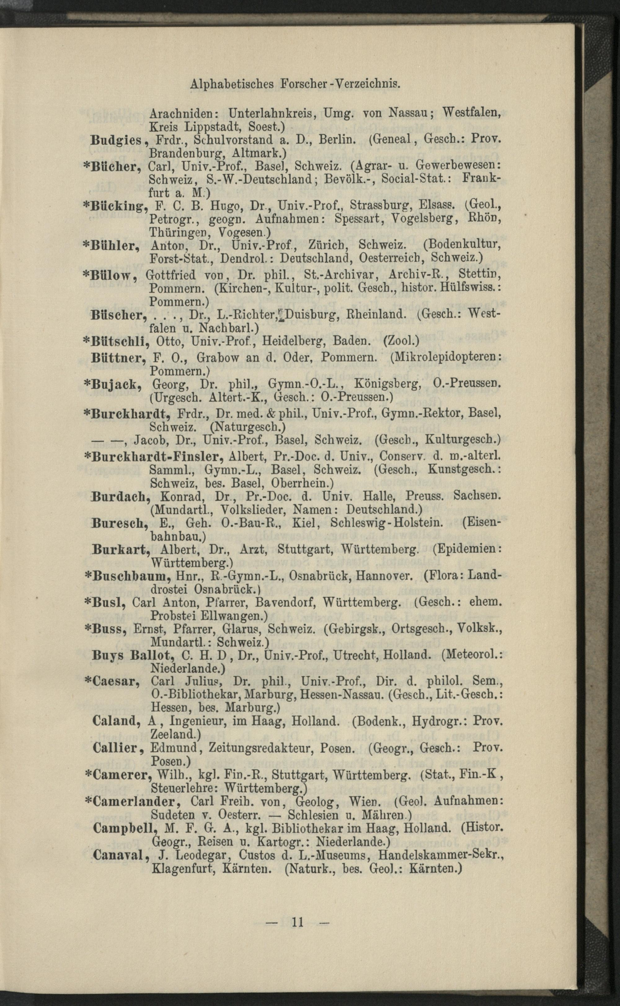 II. Forscher-Verzeichnis nach Land- und Ortschaften alphabetische geordnet.