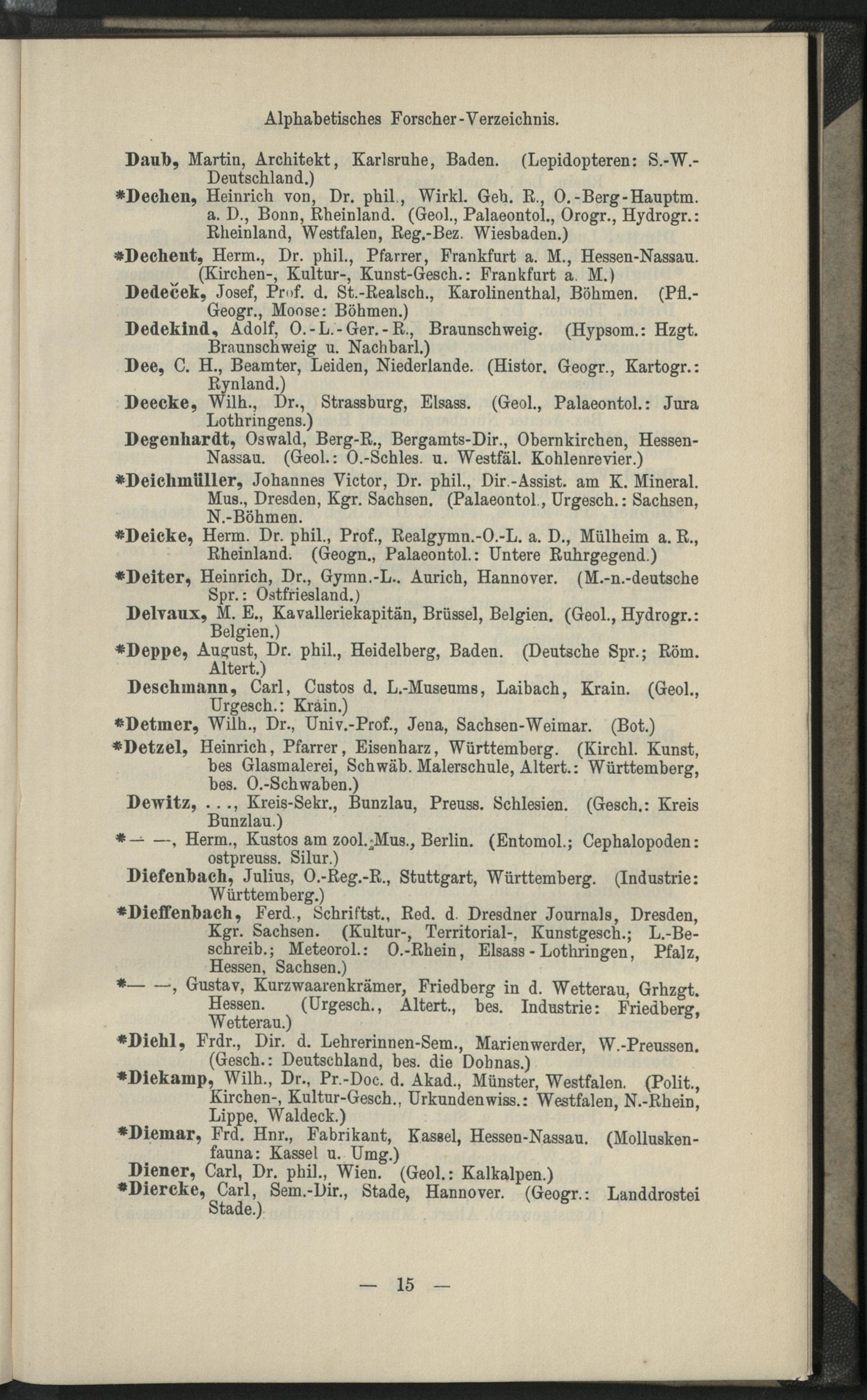 II. Forscher-Verzeichnis nach Land- und Ortschaften alphabetische geordnet.