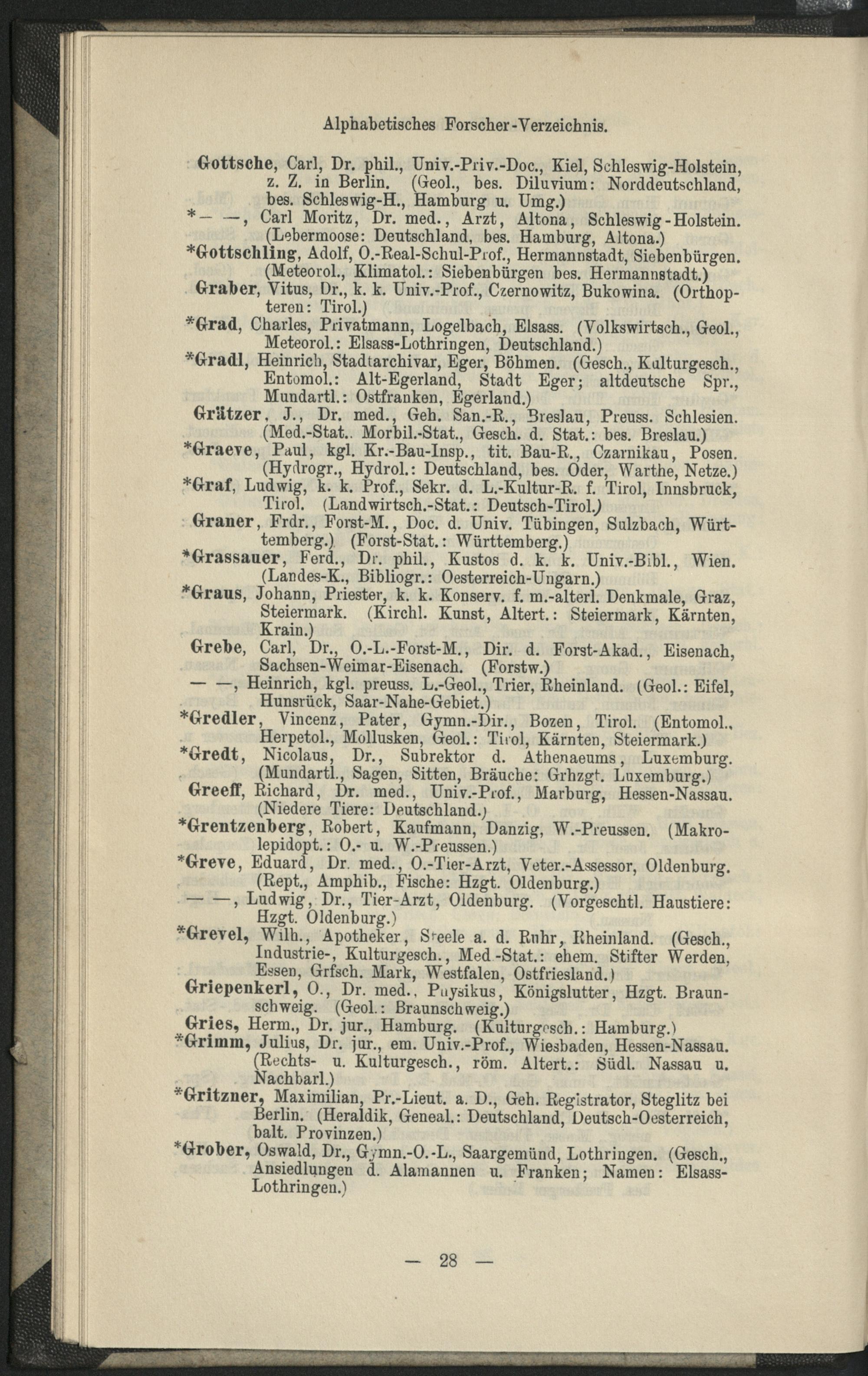 II. Forscher-Verzeichnis nach Land- und Ortschaften alphabetische geordnet.