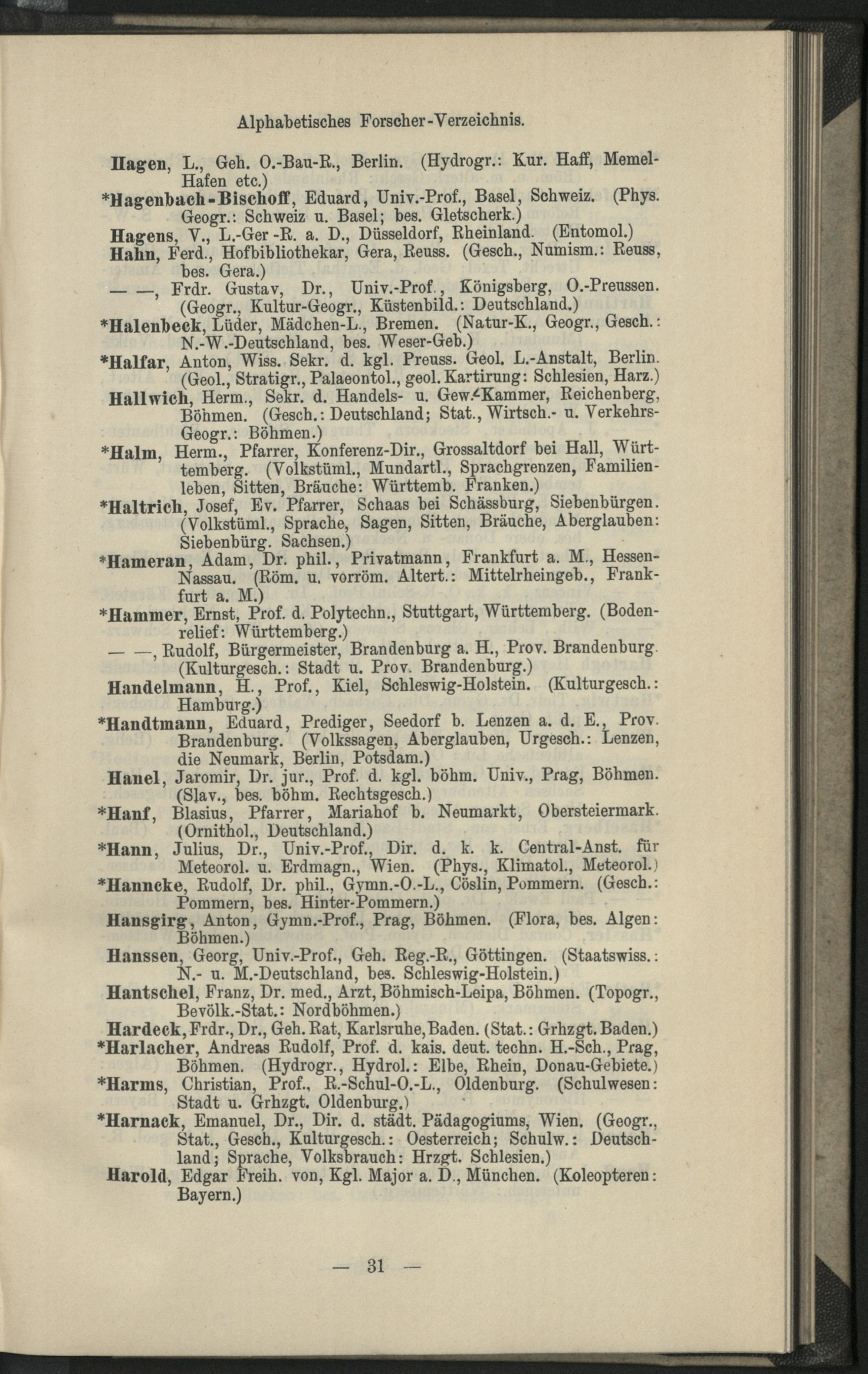 II. Forscher-Verzeichnis nach Land- und Ortschaften alphabetische geordnet.
