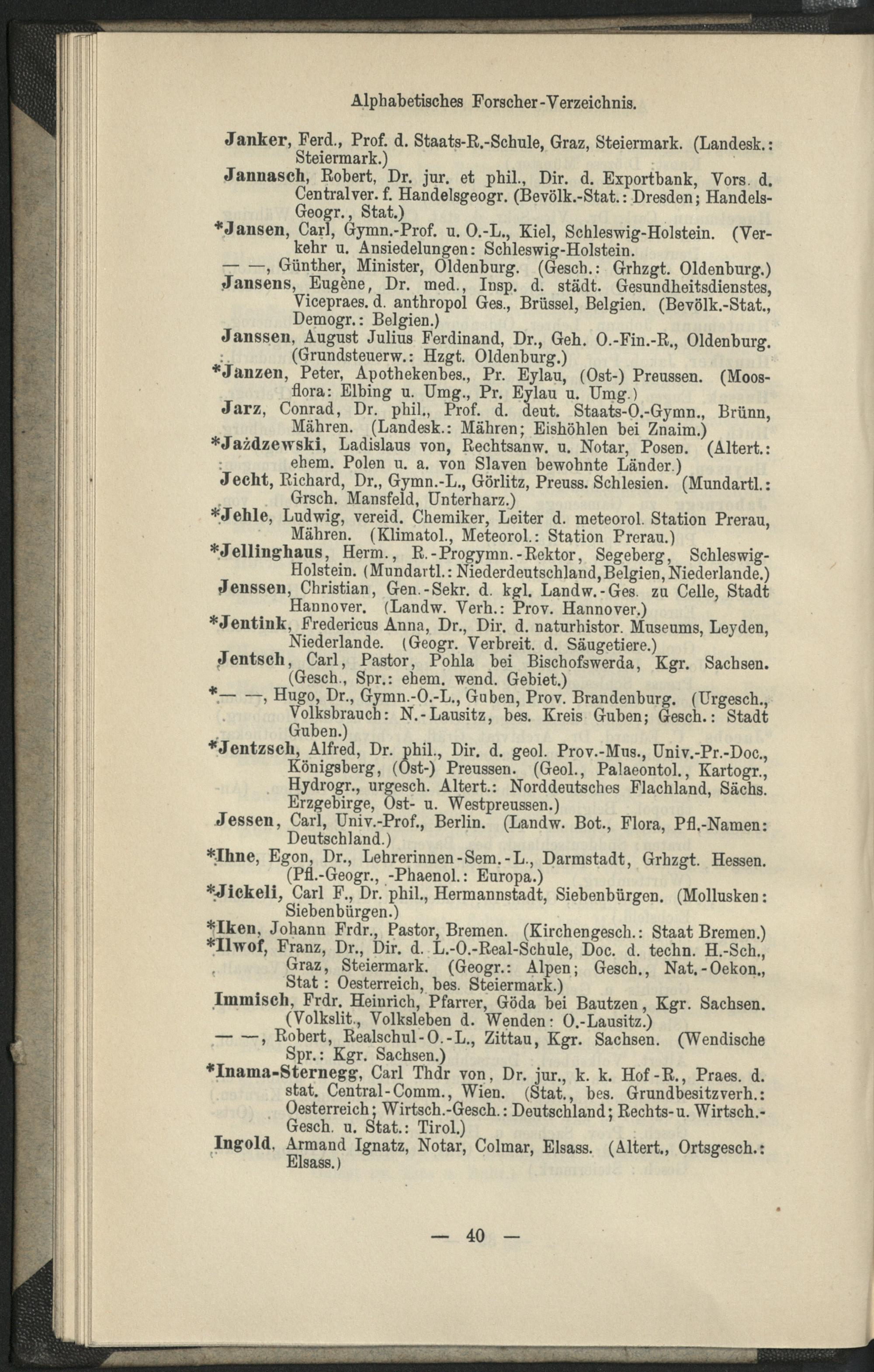 II. Forscher-Verzeichnis nach Land- und Ortschaften alphabetische geordnet.