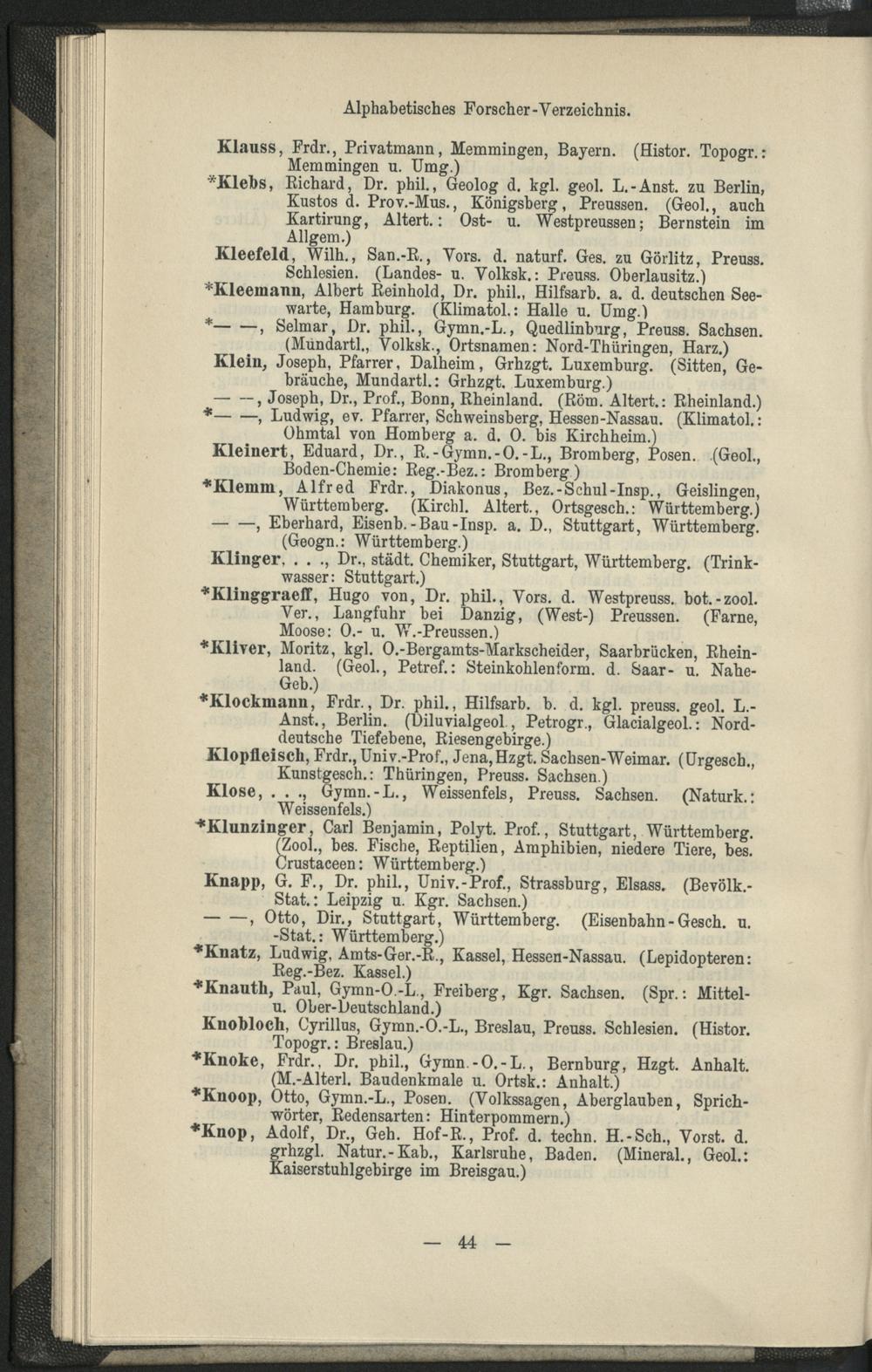 I. Alphabetisches Forscher-Verzeichnis.