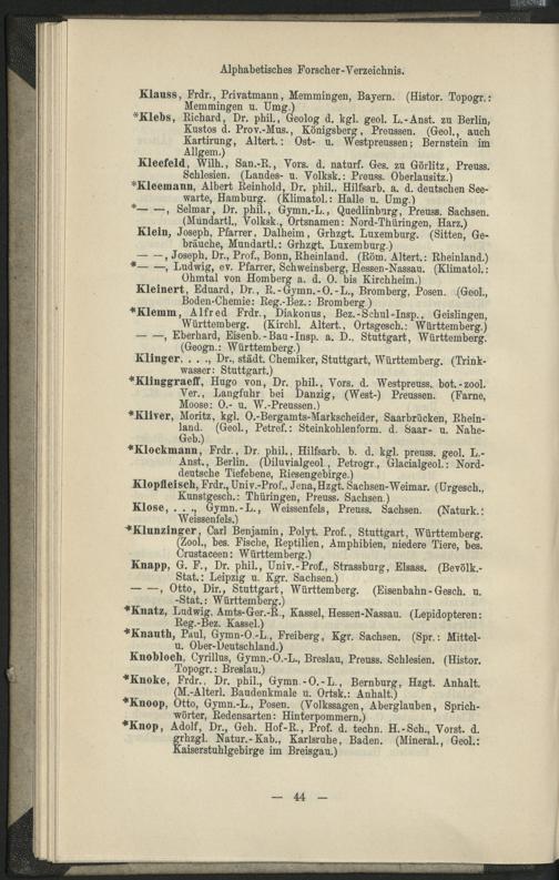 II. Forscher-Verzeichnis nach Land- und Ortschaften alphabetische geordnet.