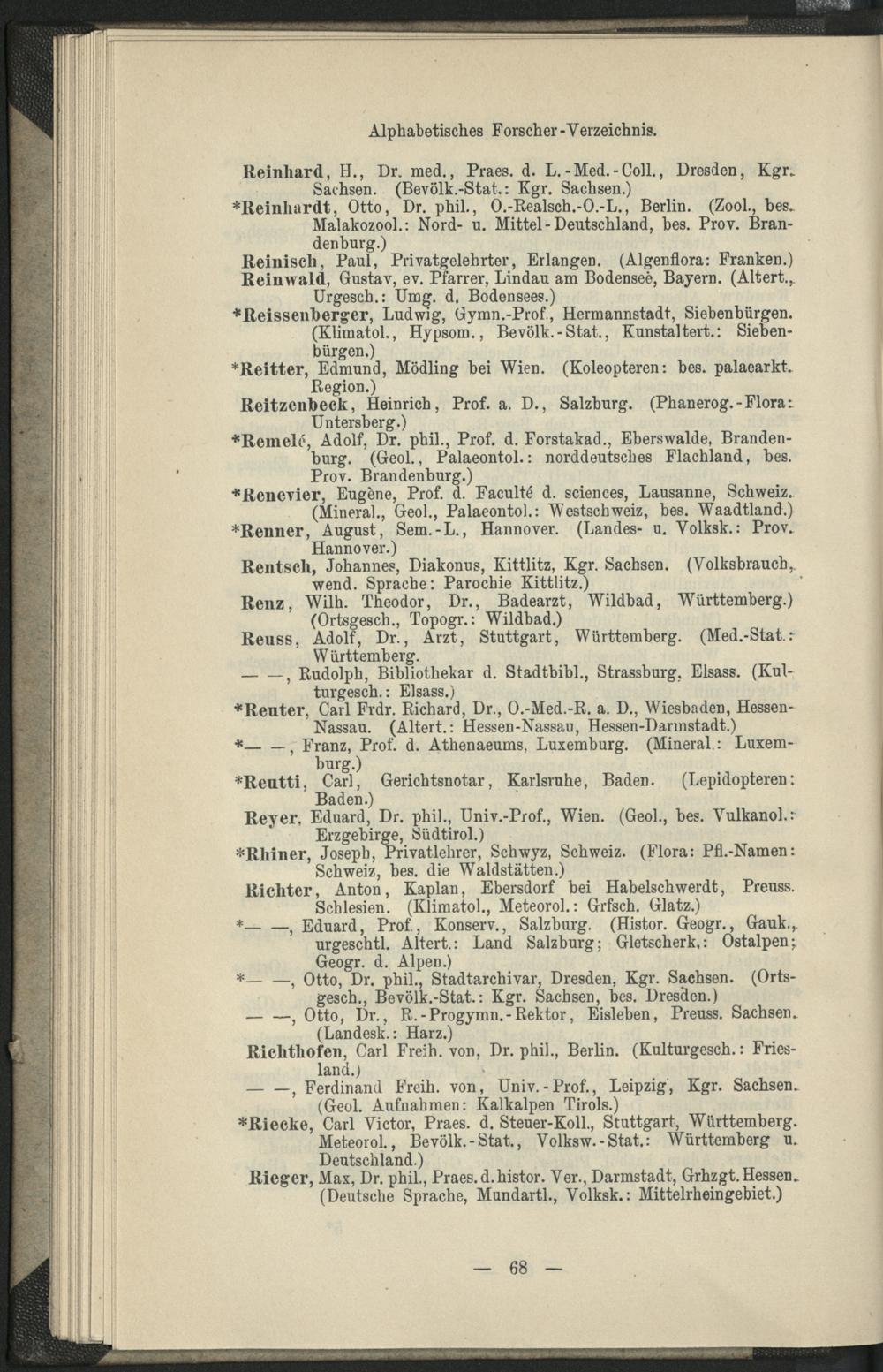 Verzeichnis von Forschern in wissenschaftlicher Landes- und Volkskunde Mittel-Europas / bearb. von Paul Emil Richter