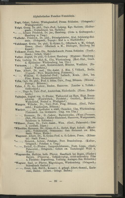 II. Forscher-Verzeichnis nach Land- und Ortschaften alphabetische geordnet.