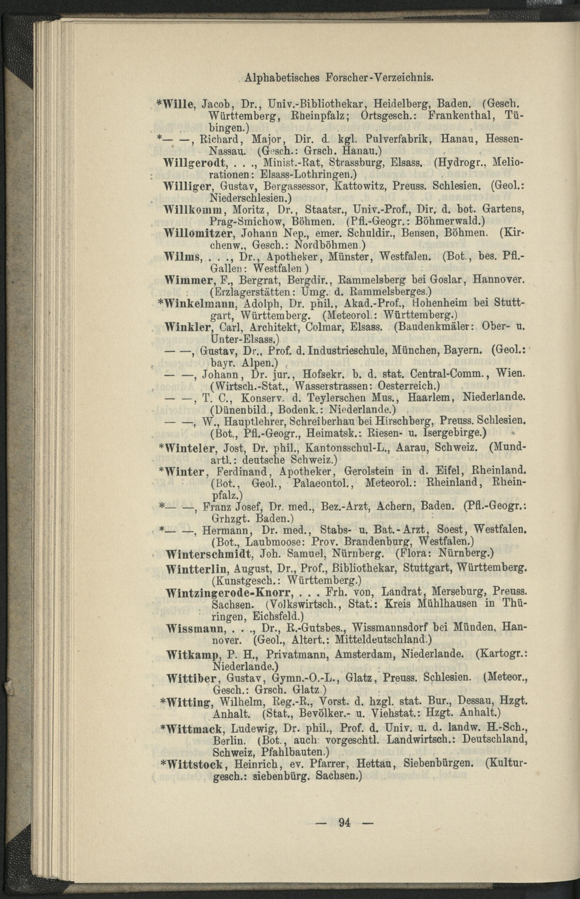 II. Forscher-Verzeichnis nach Land- und Ortschaften alphabetische geordnet.