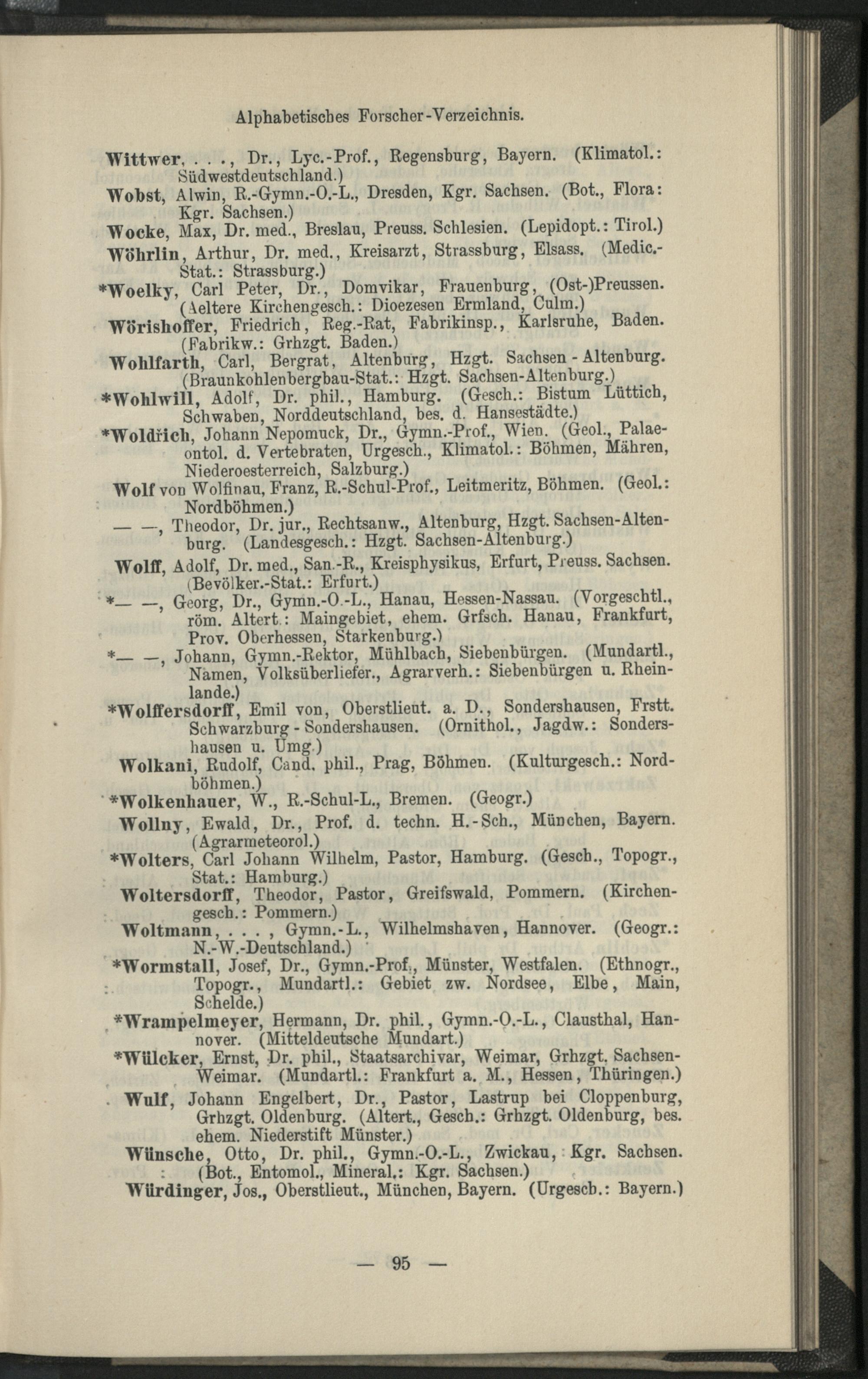 II. Forscher-Verzeichnis nach Land- und Ortschaften alphabetische geordnet.