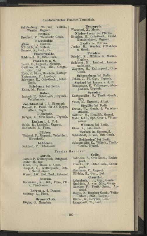 II. Forscher-Verzeichnis nach Land- und Ortschaften alphabetische geordnet.