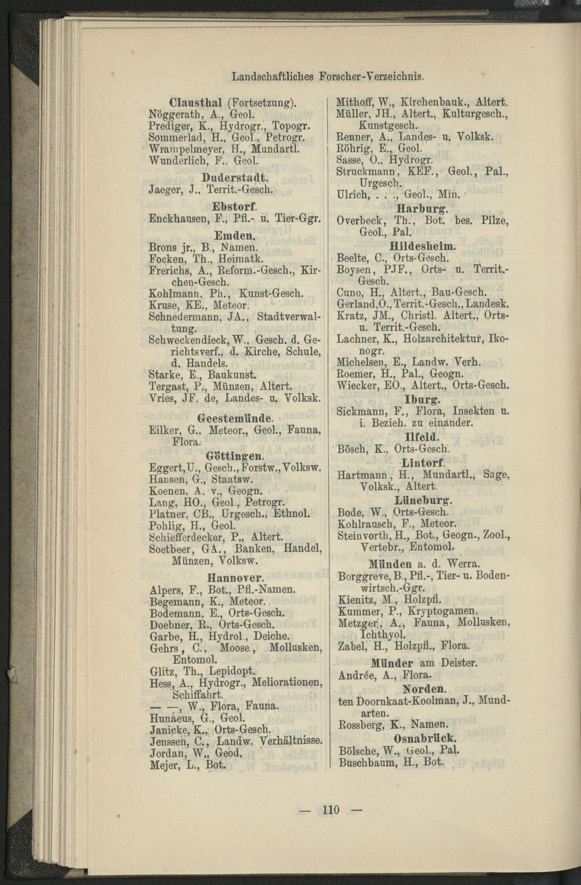 II. Forscher-Verzeichnis nach Land- und Ortschaften alphabetische geordnet.