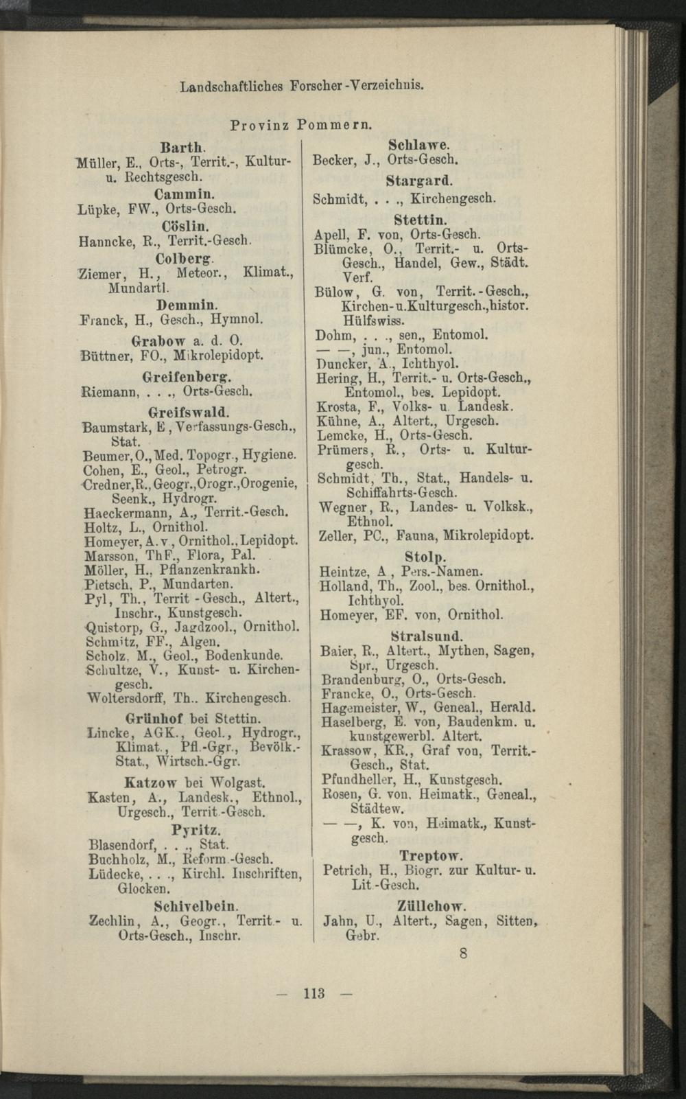 II. Forscher-Verzeichnis nach Land- und Ortschaften alphabetische geordnet.