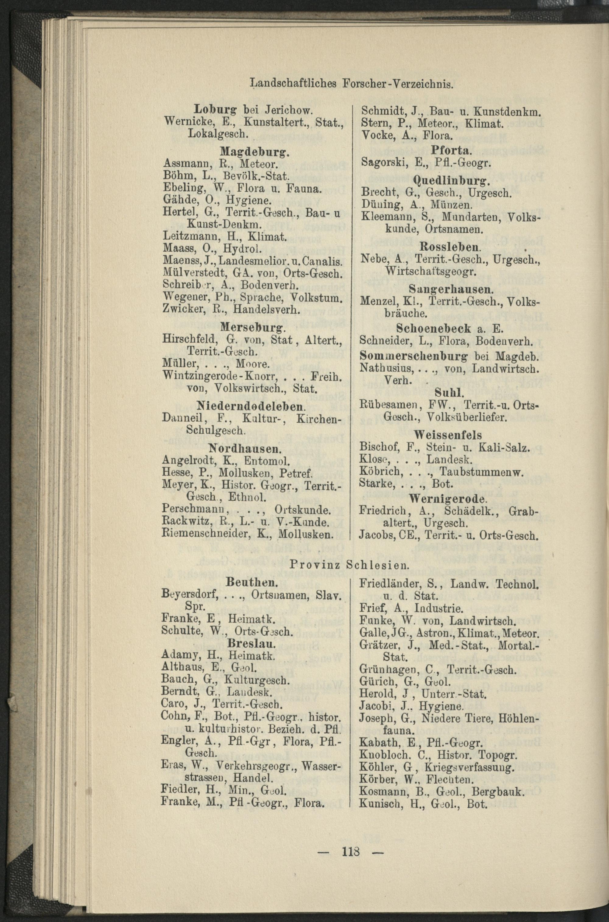 II. Forscher-Verzeichnis nach Land- und Ortschaften alphabetische geordnet.