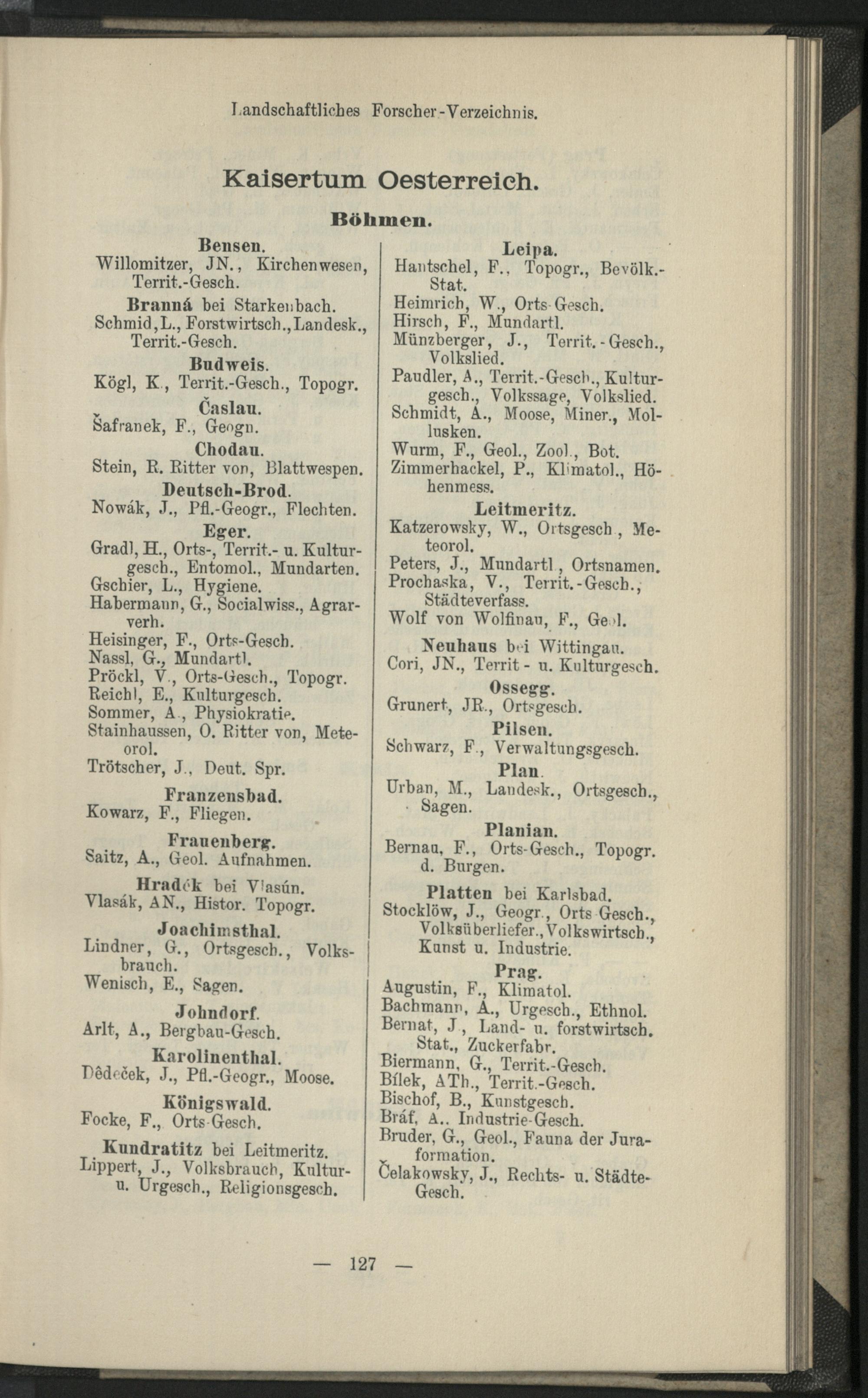 II. Forscher-Verzeichnis nach Land- und Ortschaften alphabetische geordnet.