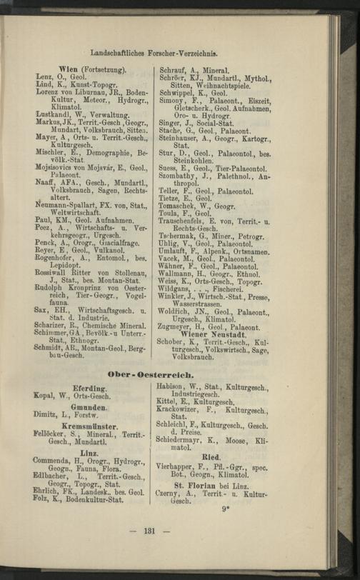 II. Forscher-Verzeichnis nach Land- und Ortschaften alphabetische geordnet.