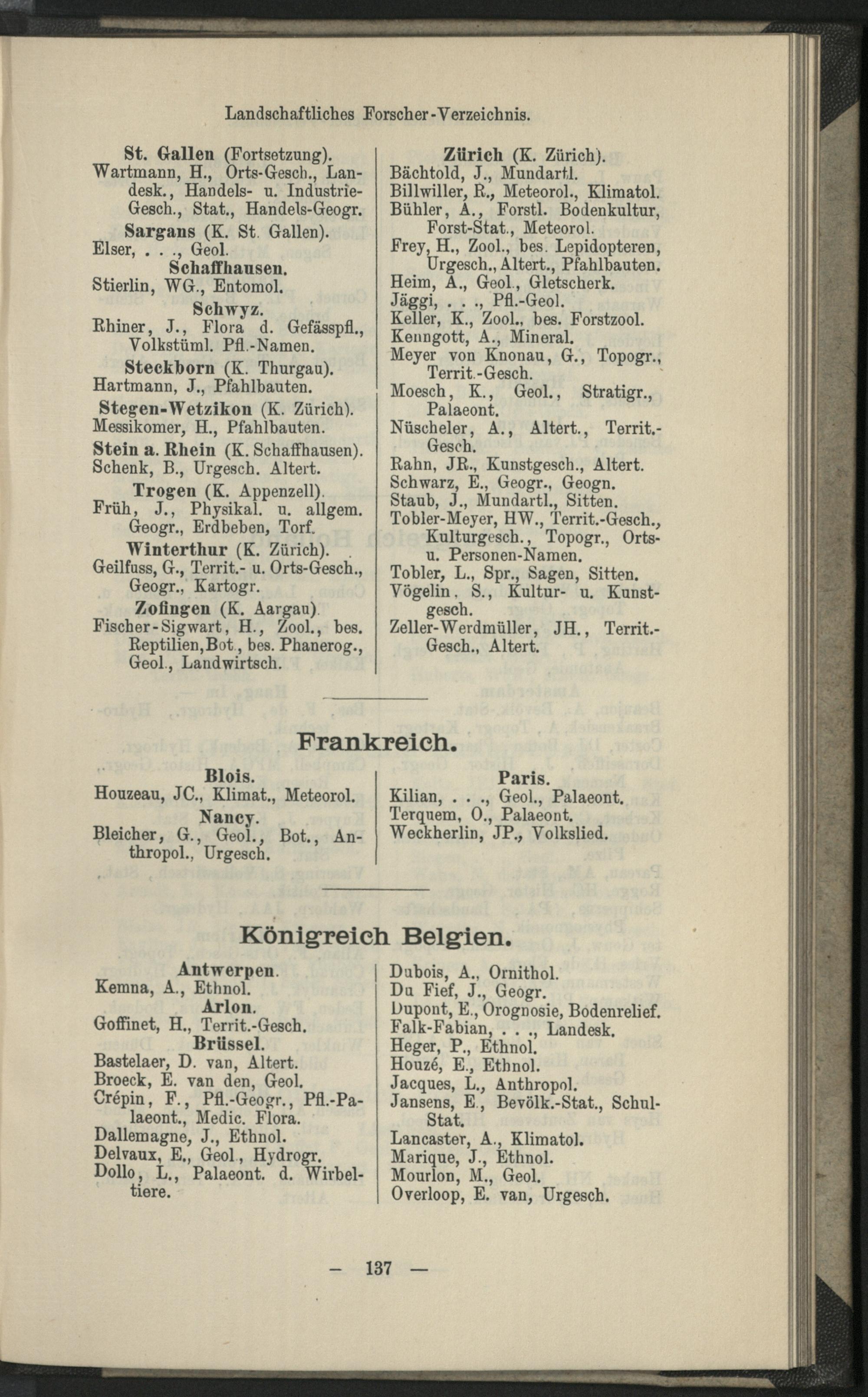 II. Forscher-Verzeichnis nach Land- und Ortschaften alphabetische geordnet.