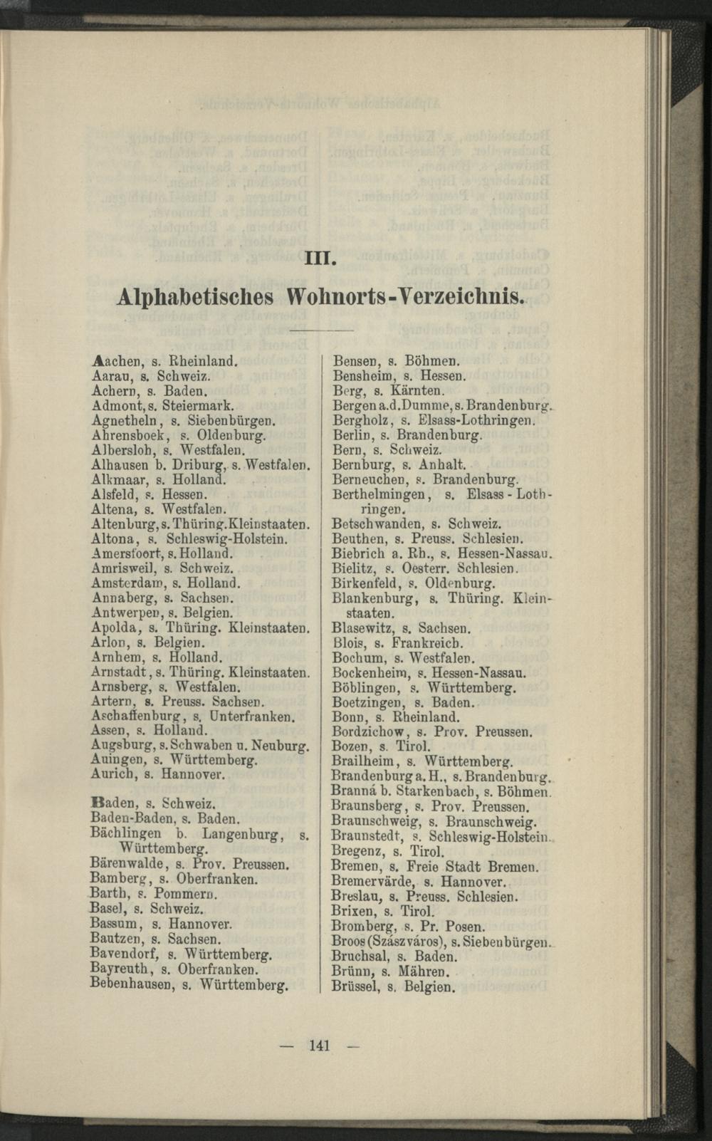 III. Alphabetisches Wohnorts-Verzeichnis.