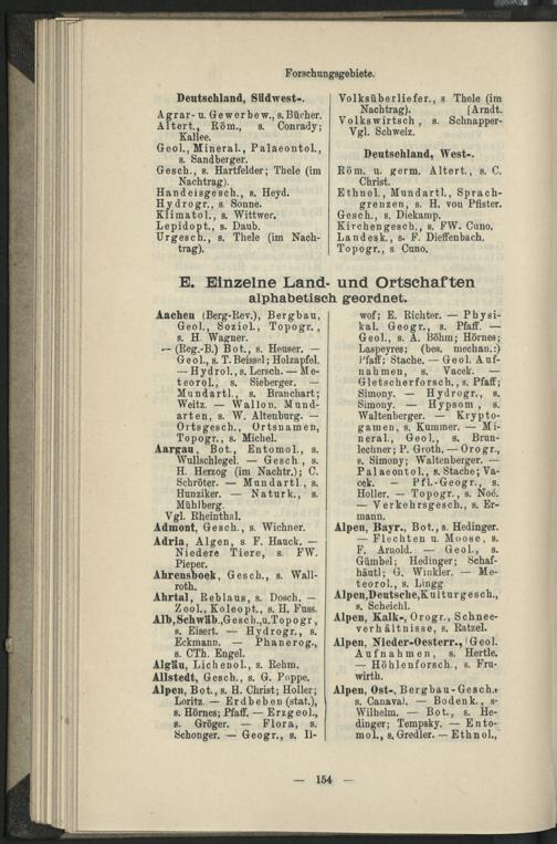 II. Forscher-Verzeichnis nach Land- und Ortschaften alphabetische geordnet.