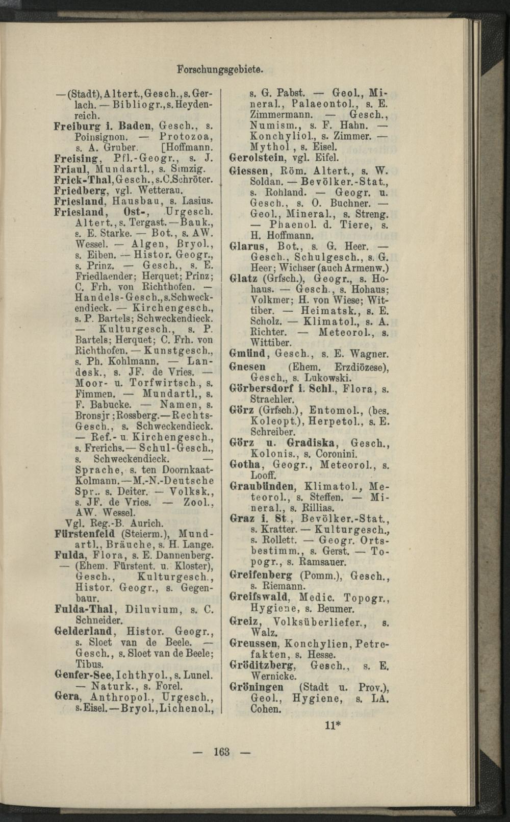 II. Forscher-Verzeichnis nach Land- und Ortschaften alphabetische geordnet.