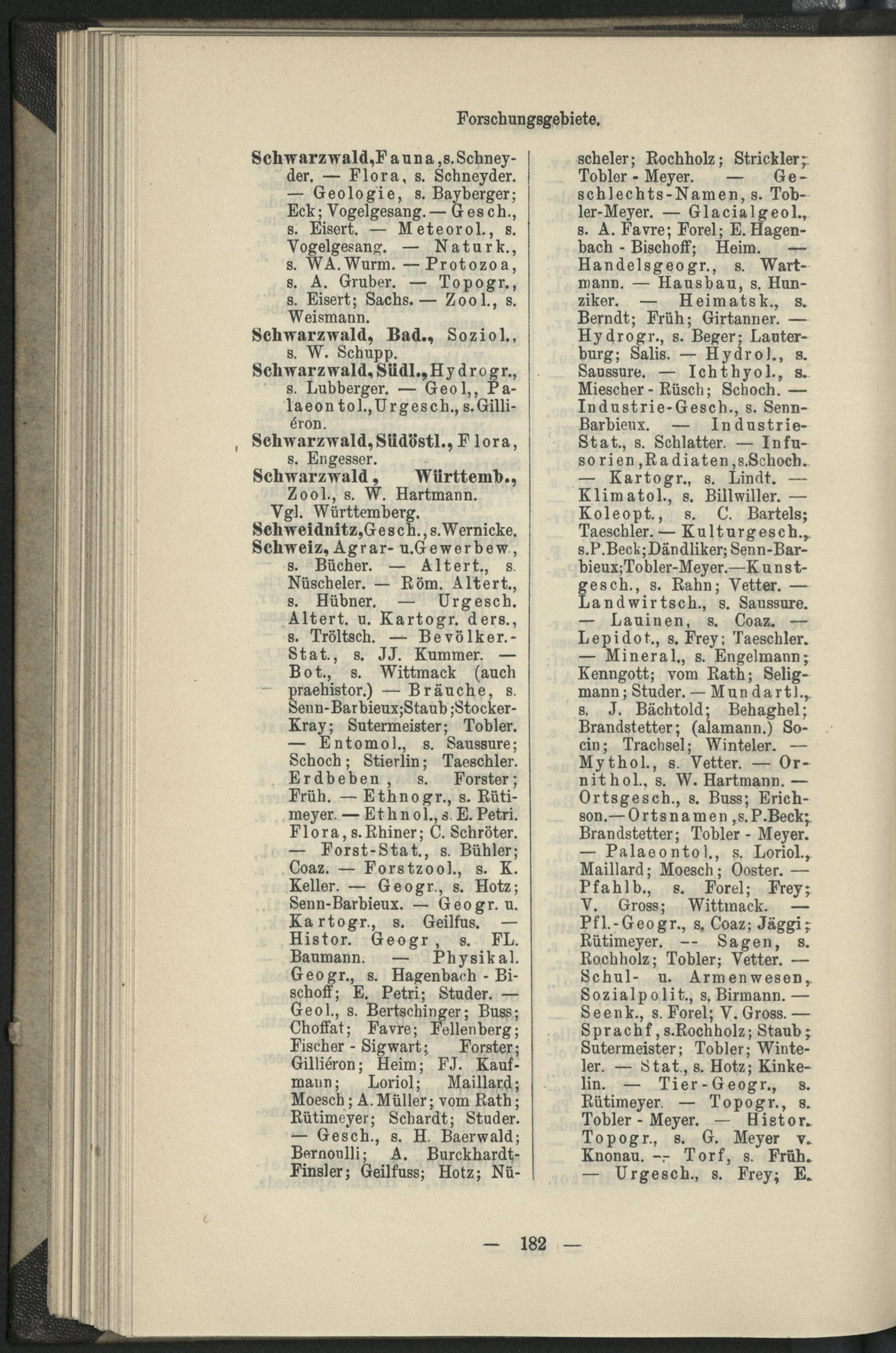 II. Forscher-Verzeichnis nach Land- und Ortschaften alphabetische geordnet.