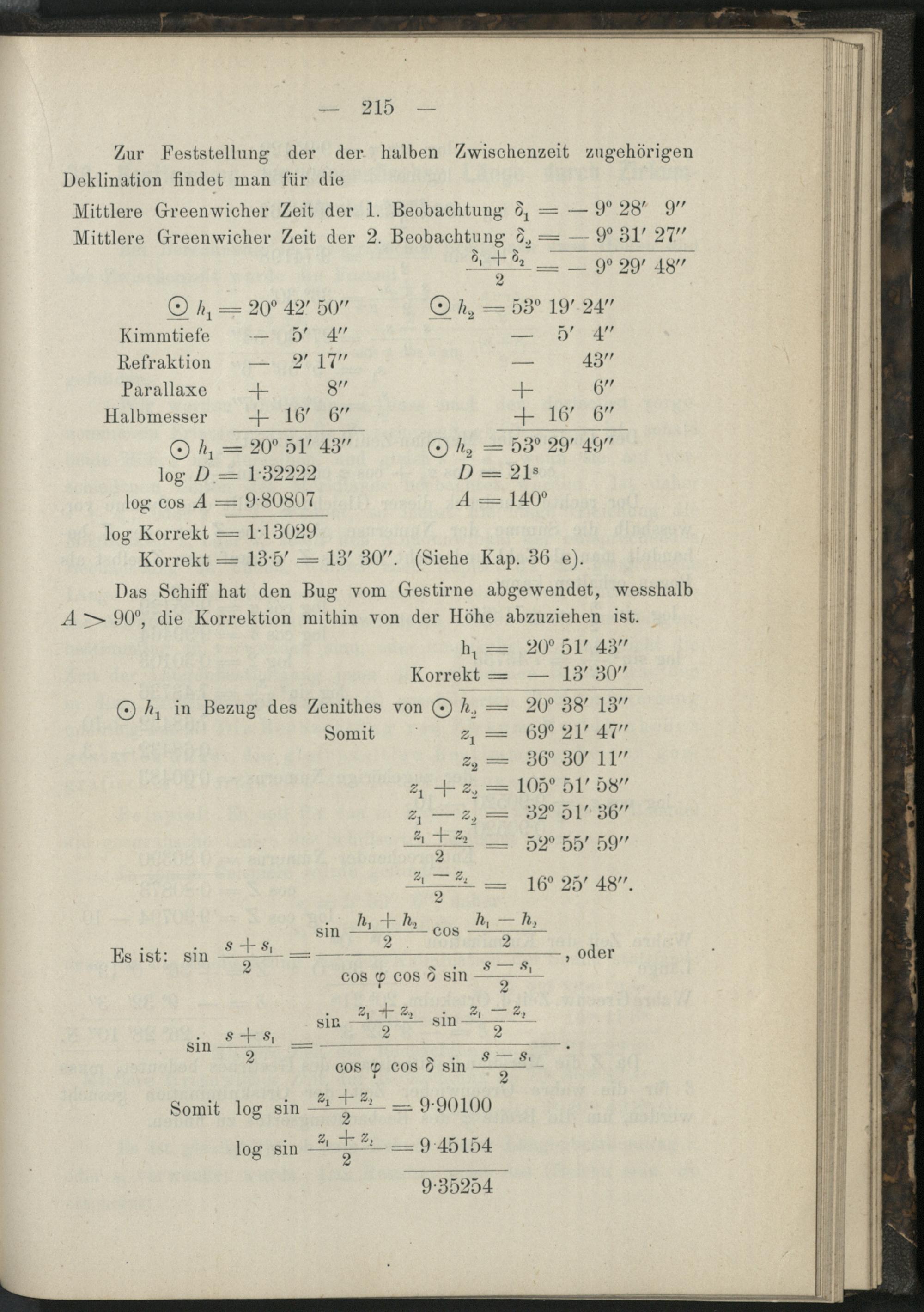 37. Berechnung der geografischen Breite mittelst zweier ausserhalb des Meridians...