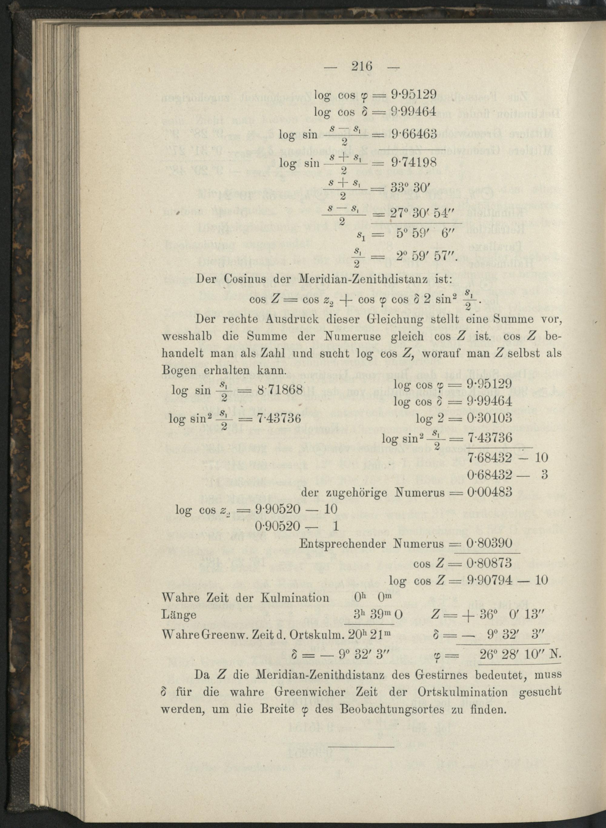 37. Berechnung der geografischen Breite mittelst zweier ausserhalb des Meridians...