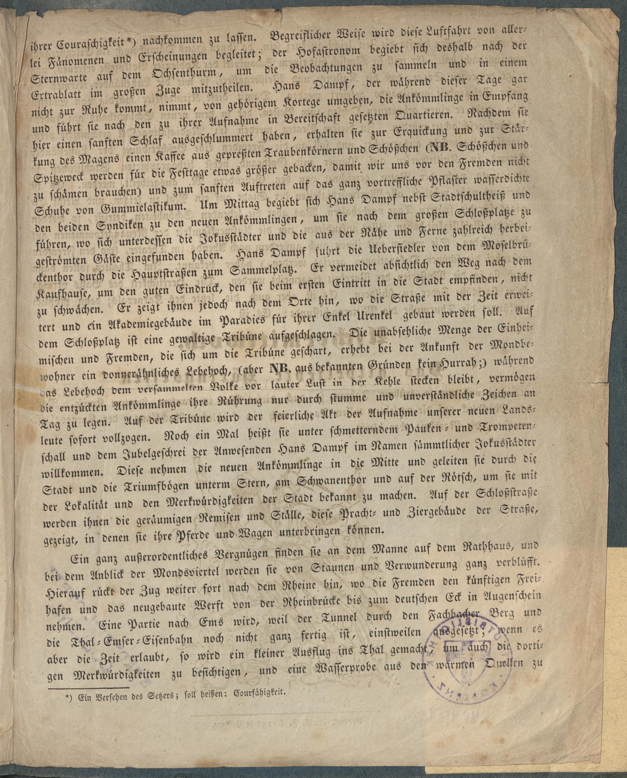 Festprogramm in welchem die unerhörten Wunder-Dinge, die sich während der drei Fastnachtstage im Jahre 1839 im Monde, in der Luft und in der Jokusstadt sichtbar und unsichtbar zutragen sollen, berichtet werden