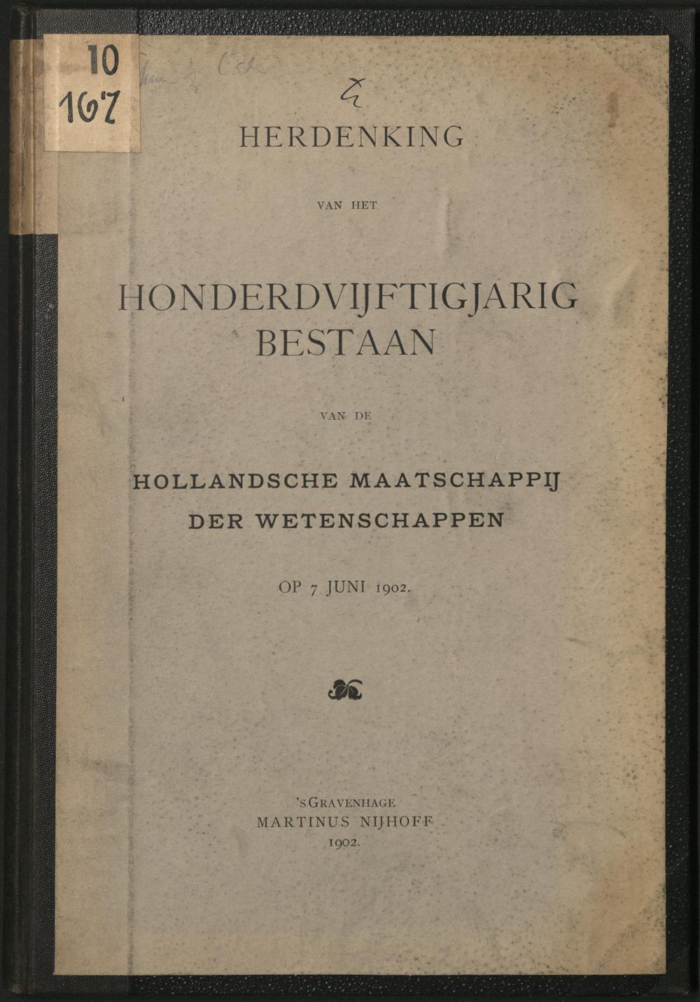 Herdenking van het honderdvijftigjarig bestaan van de Hollandsche Maatschappiy der Wetenschappen op 7 Juni 1902