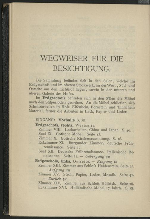 Verzeichnis der im Führer genannten Wände, Schränke und Gestelle
