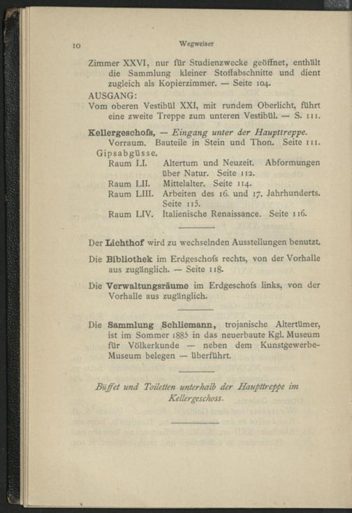 Verzeichnis der im Führer genannten Wände, Schränke und Gestelle