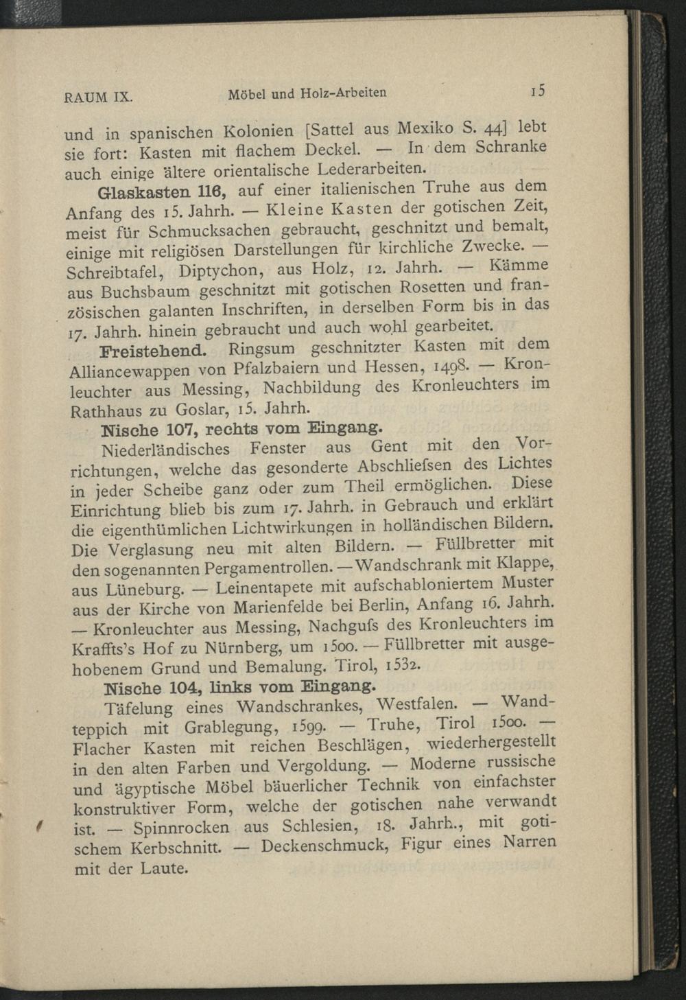 Verzeichnis der im Führer genannten Wände, Schränke und Gestelle