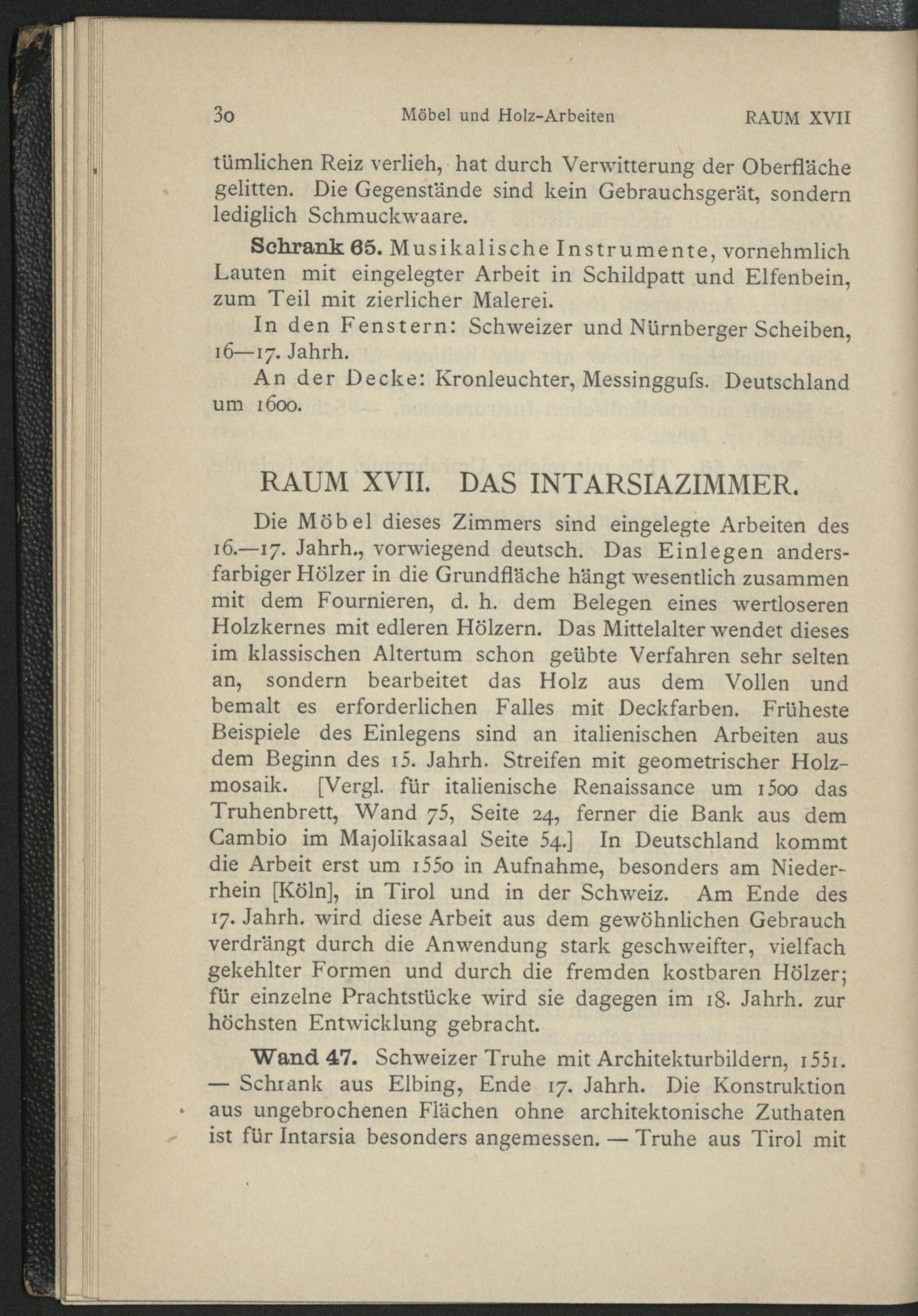 Verzeichnis der im Führer genannten Wände, Schränke und Gestelle
