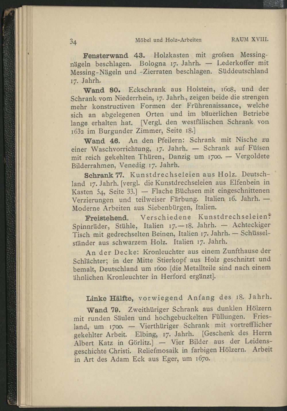Verzeichnis der im Führer genannten Wände, Schränke und Gestelle