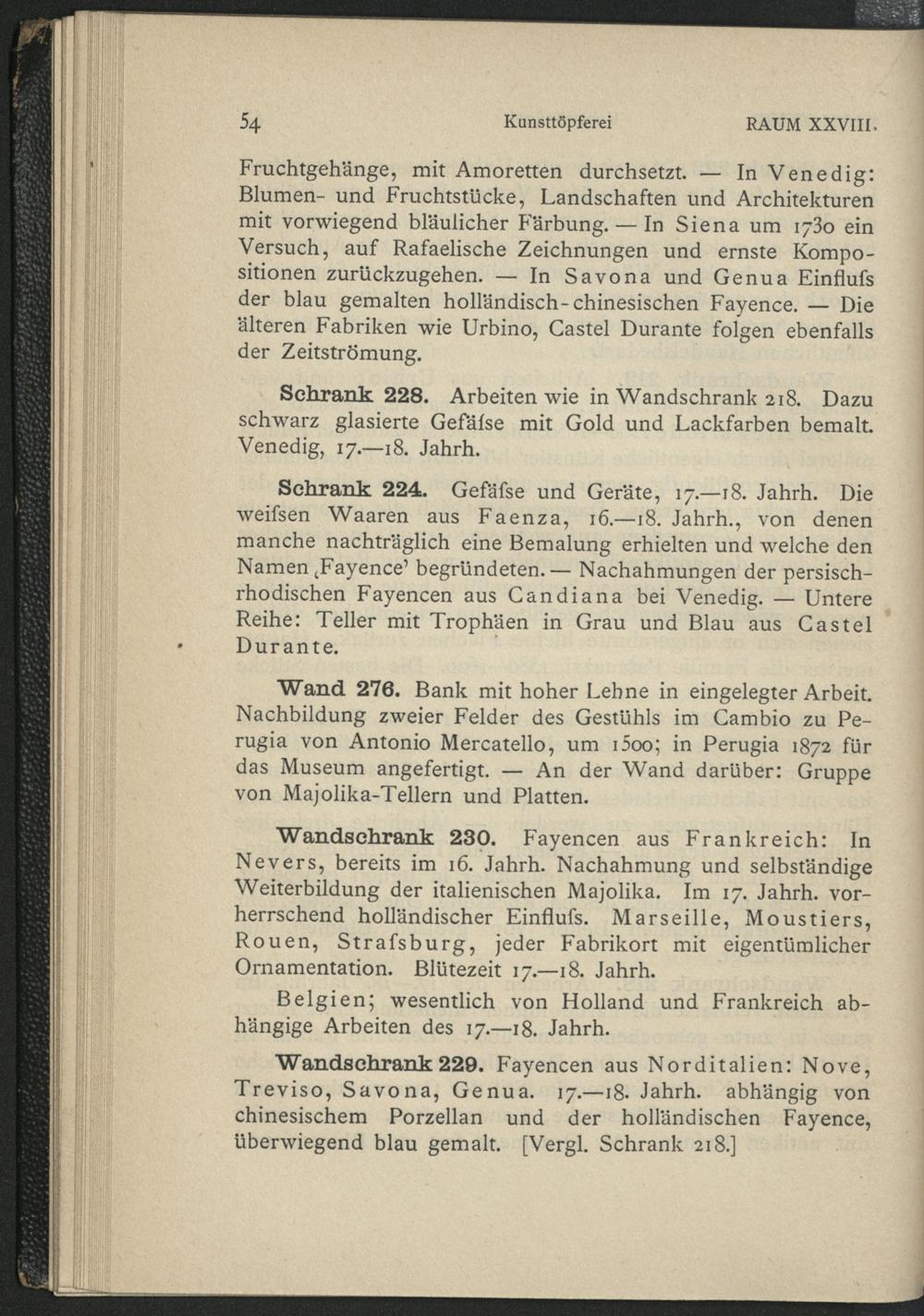 Verzeichnis der im Führer genannten Wände, Schränke und Gestelle