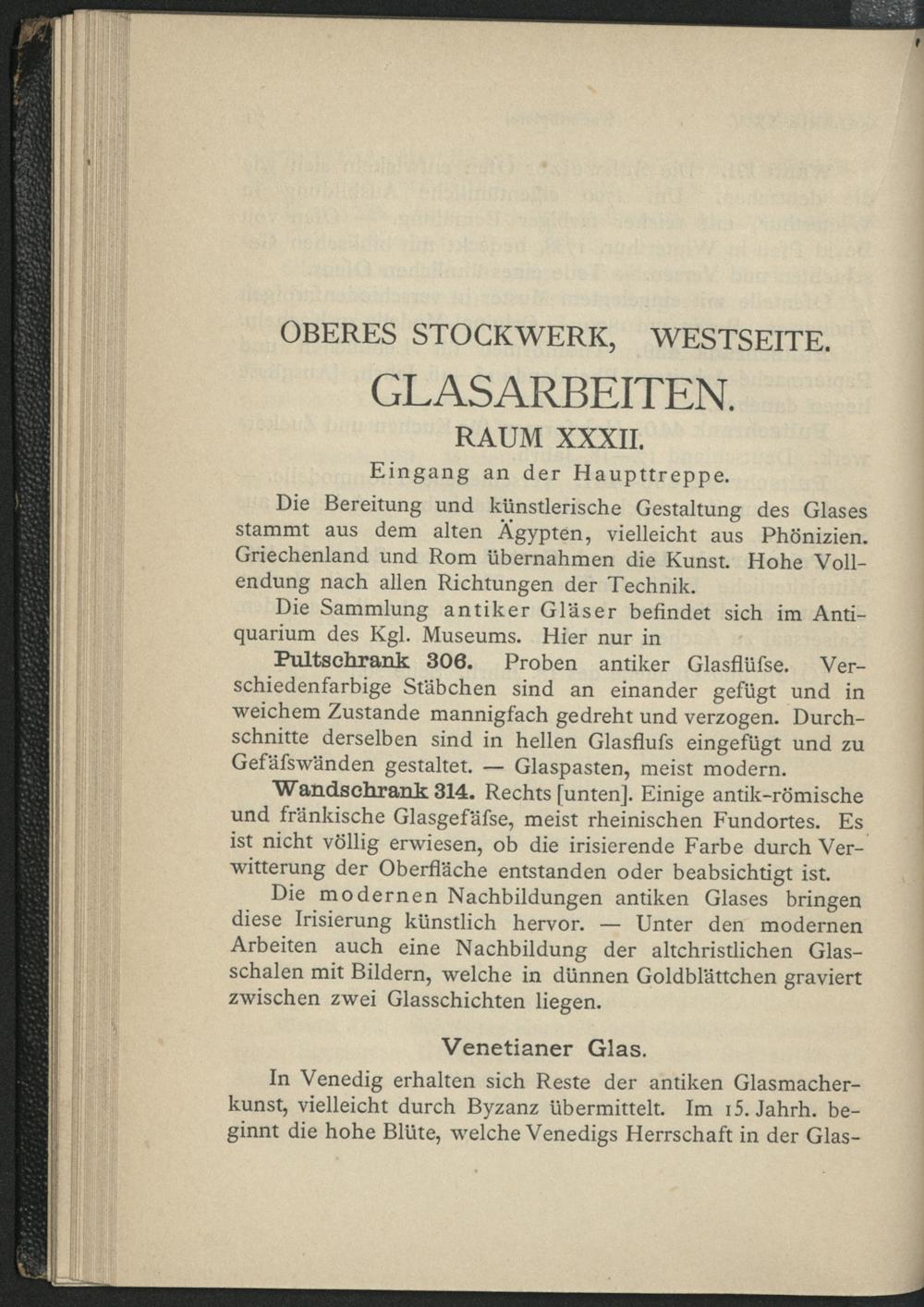 Verzeichnis der im Führer genannten Wände, Schränke und Gestelle