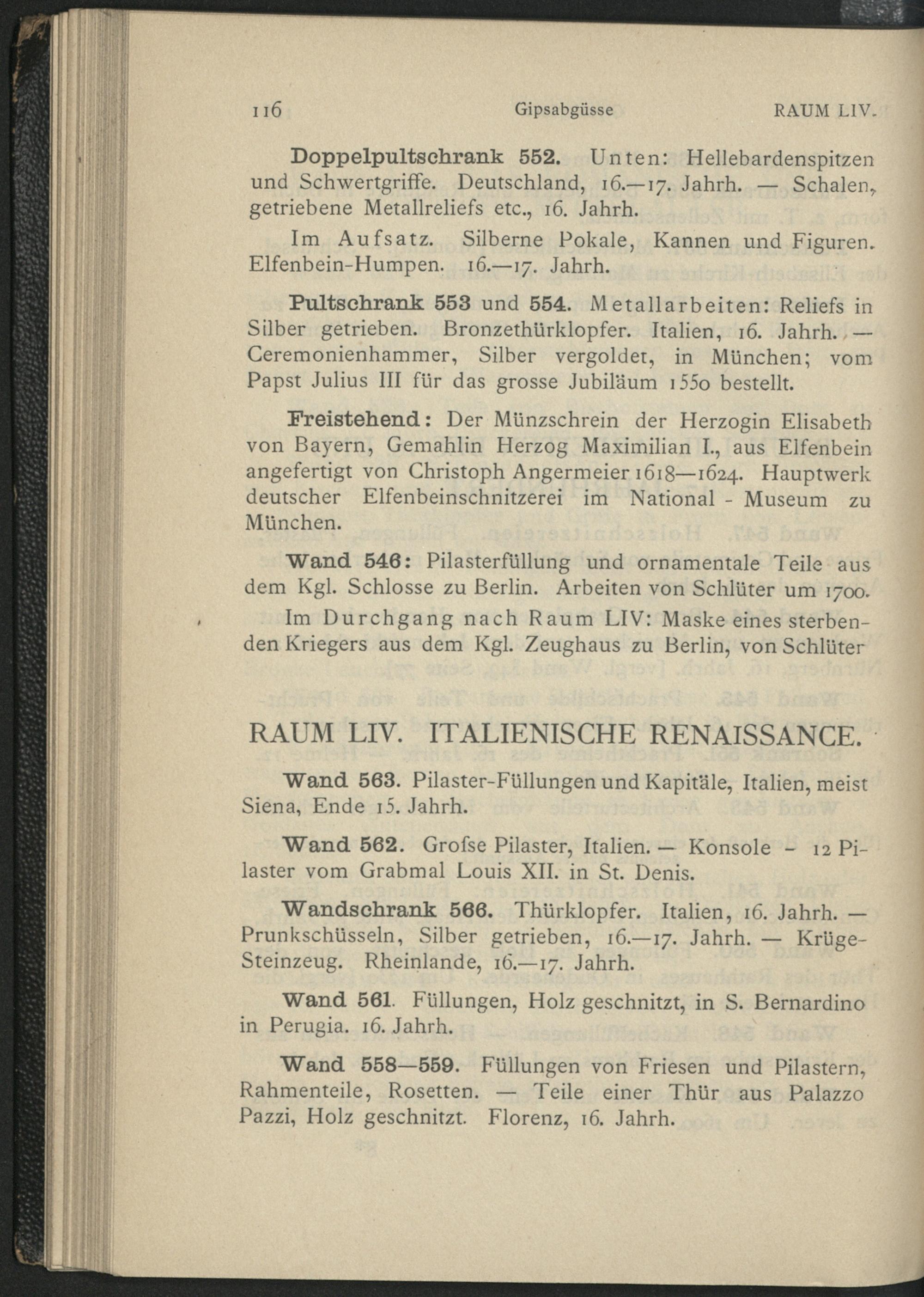 Verzeichnis der im Führer genannten Wände, Schränke und Gestelle