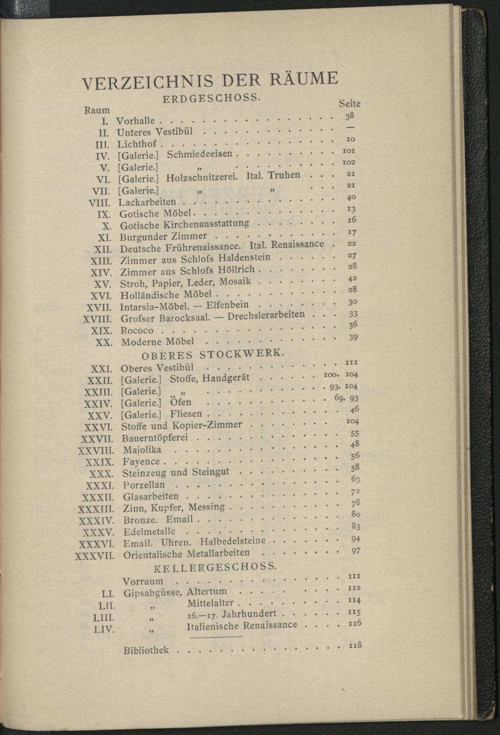 Verzeichnis der Räume