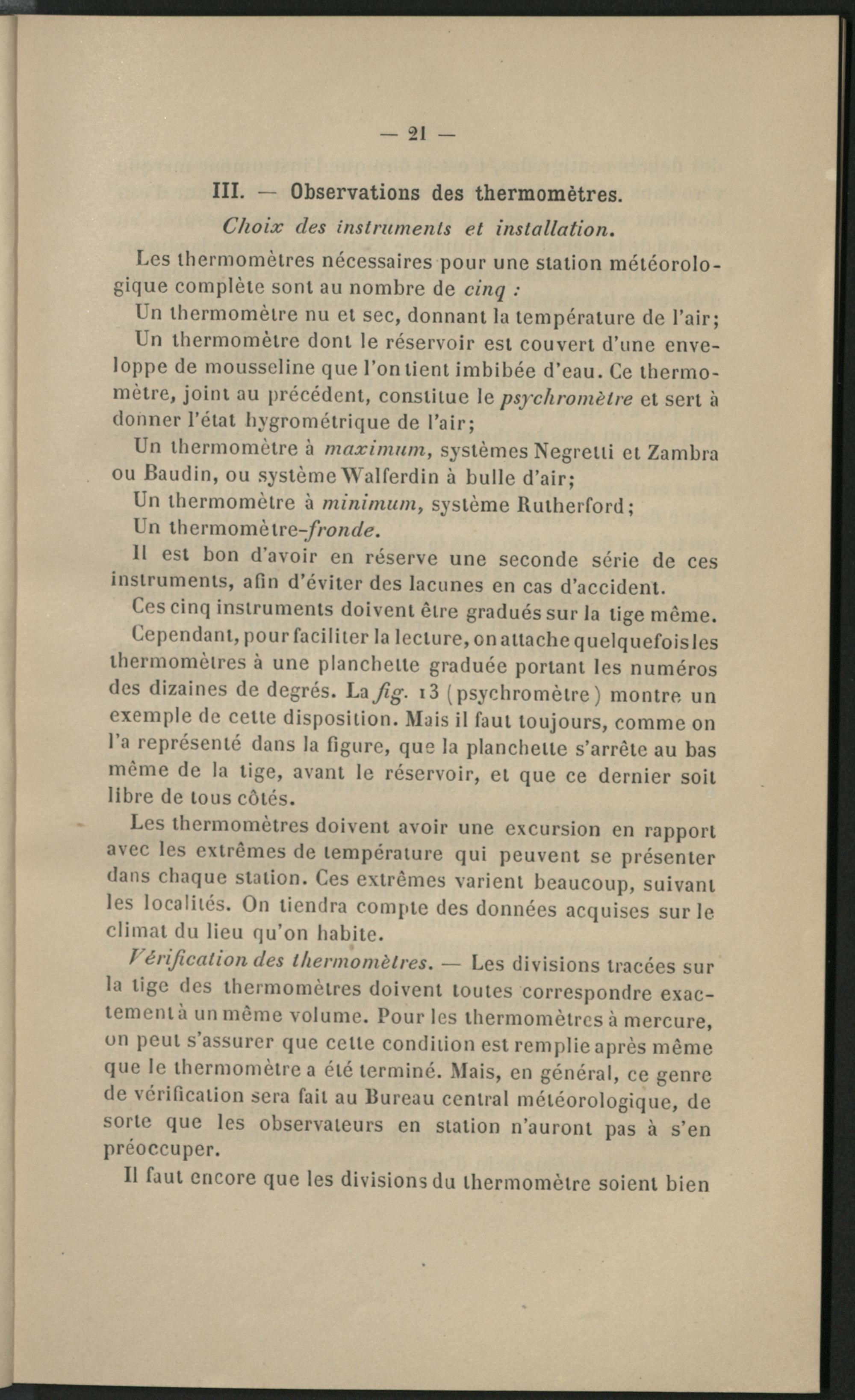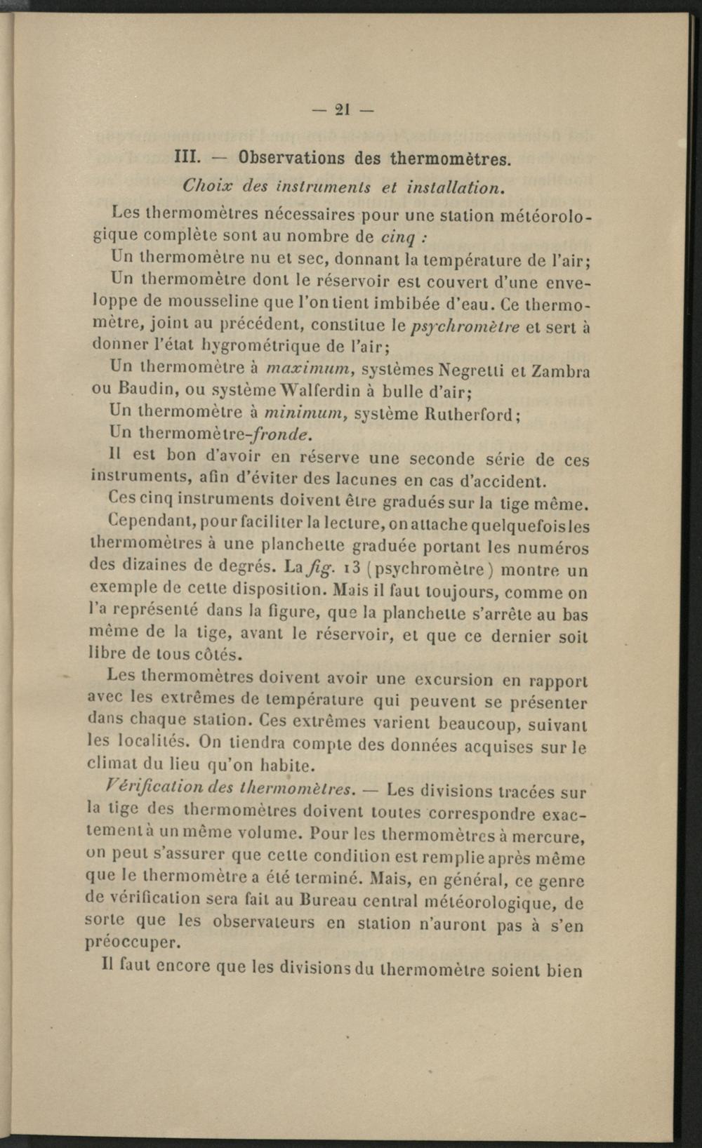 III. - Observations des thermométres.
