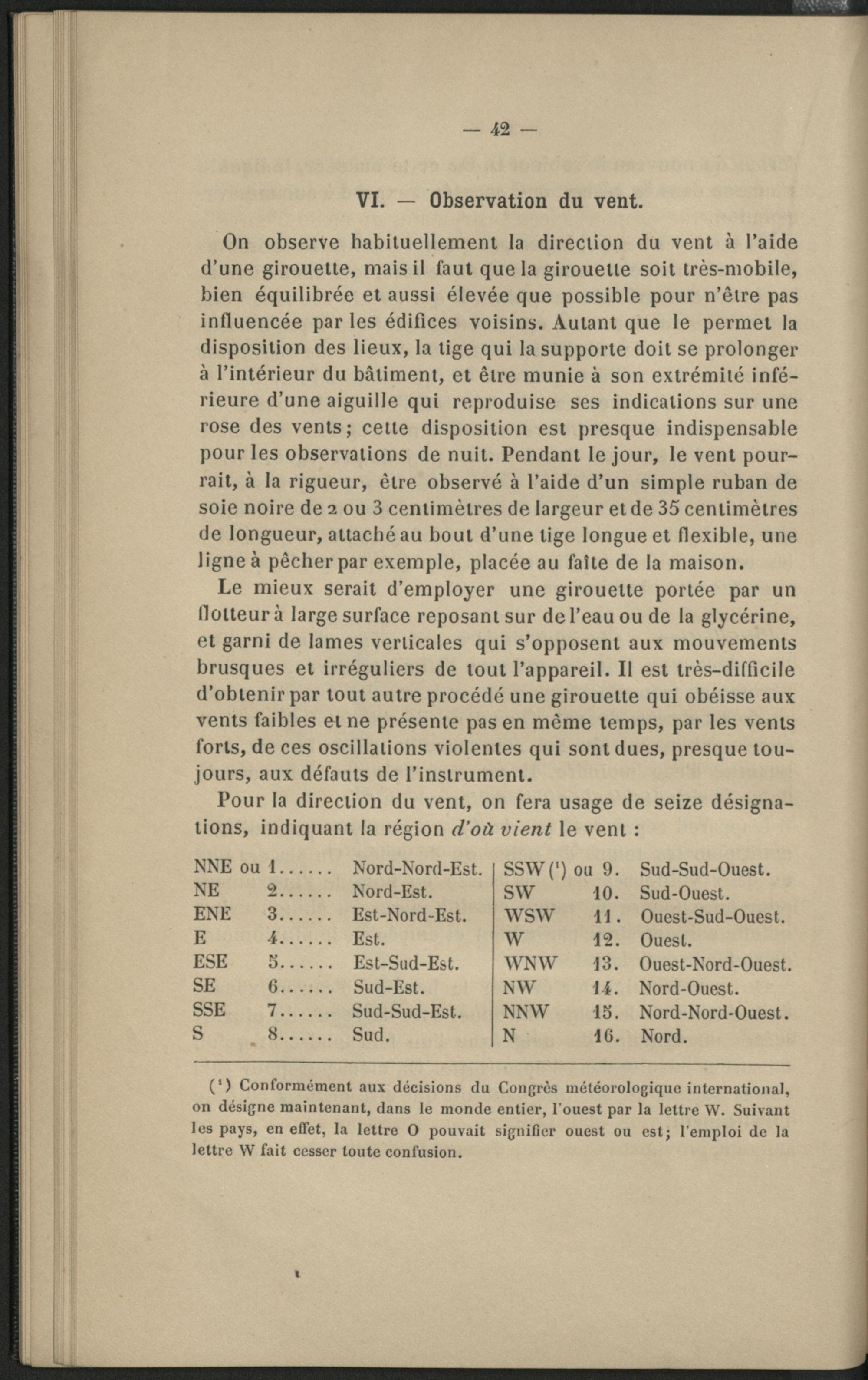VI. - Observation du vent.