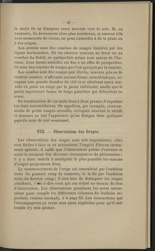 VII. - Ètat du Ciel. VIII. - Observations des Orages.
