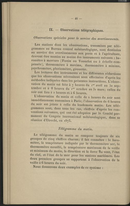 IX. - Observations télégraphiques.