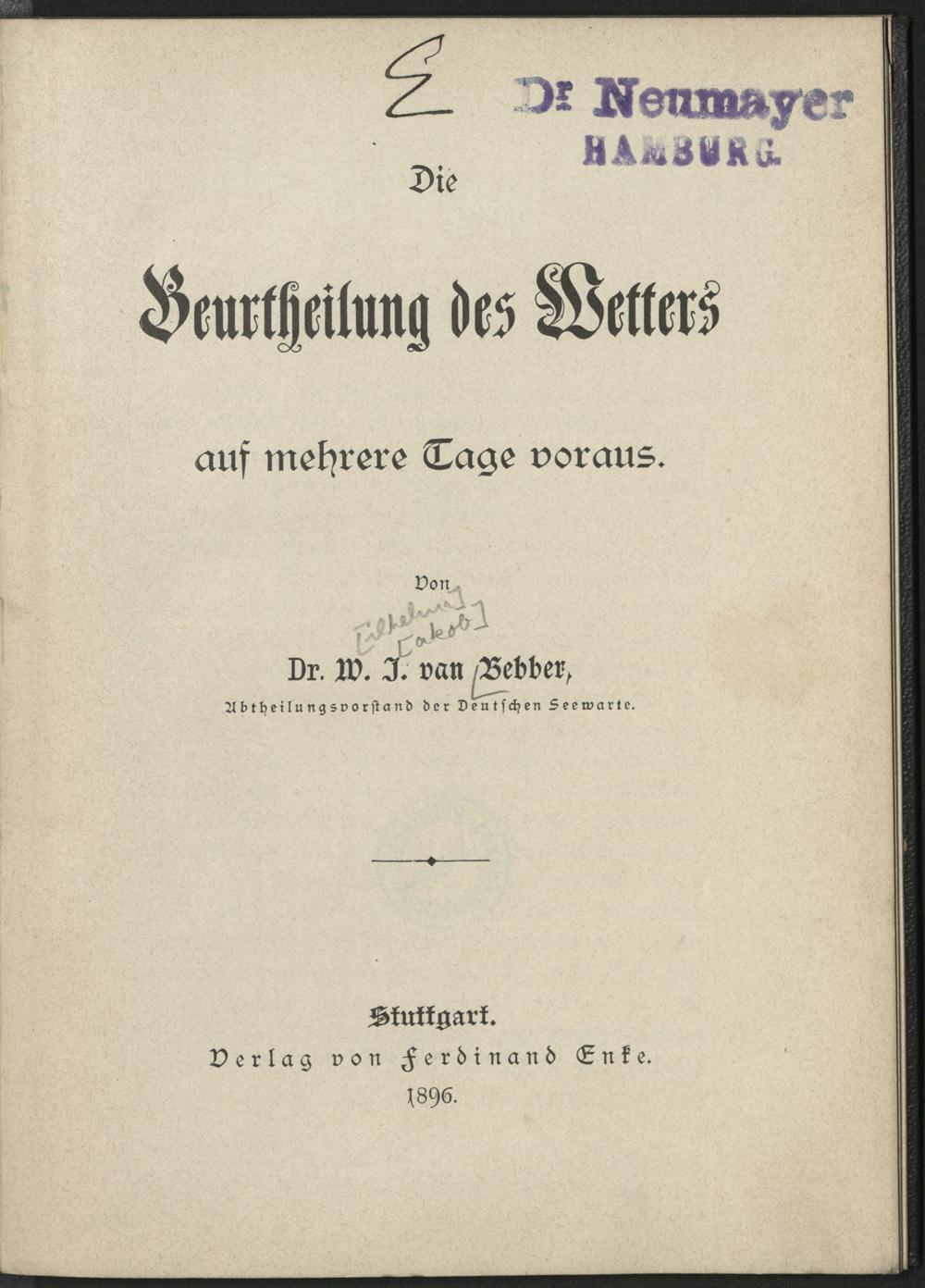 Die Beurtheilung des Wetters auf mehrere Tage voraus / W. J. van Bebber