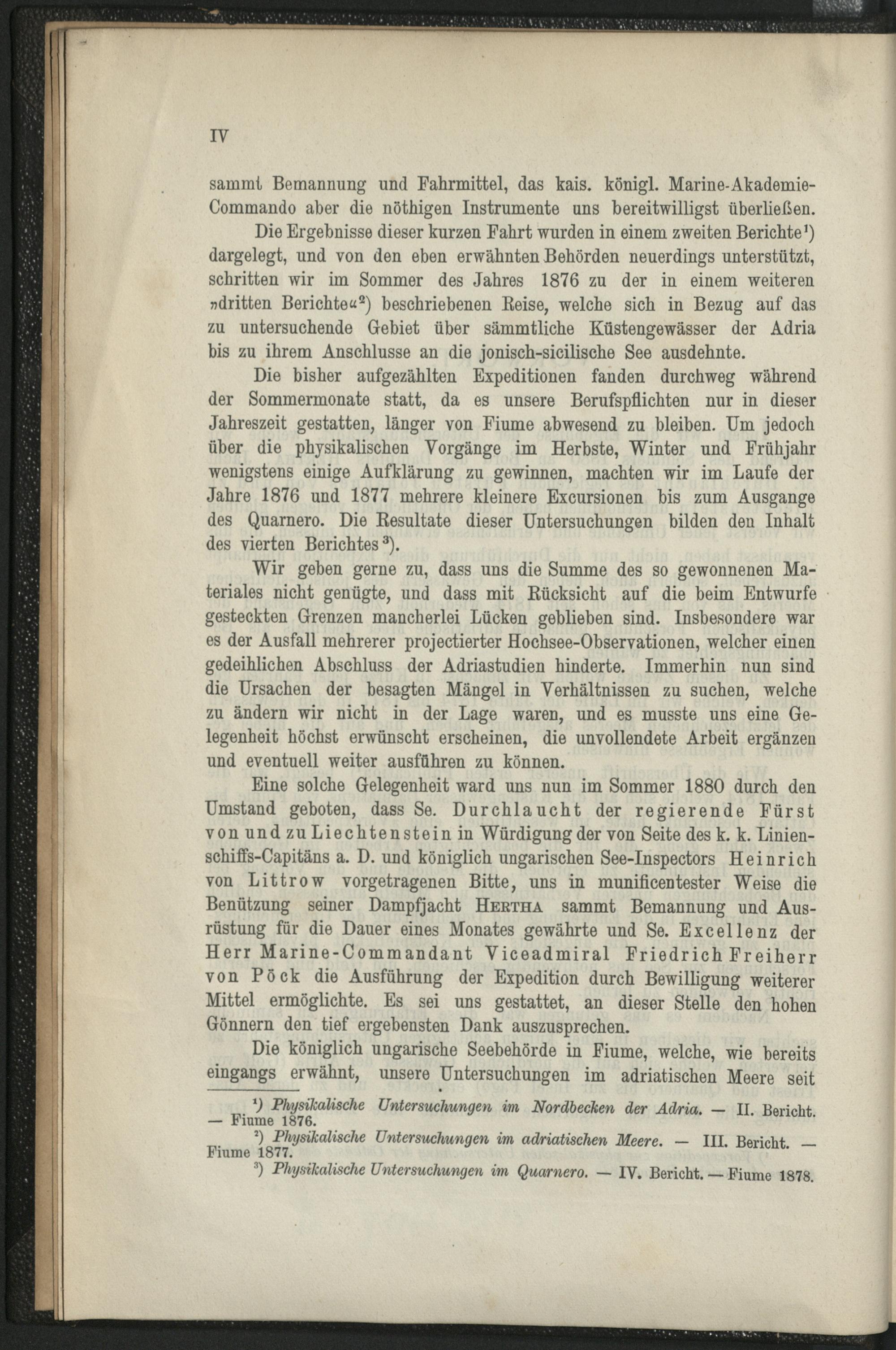 Physikalische Untersuchungen im adriatischen und sicilisch-jonischen Meere während des Sommers 1880 an Bord des Dampfers "Hertha", Jacht Sr. Durchl. des regierenden Fürsten Johannes von und zu Liechtenstein : sammt Untersuchungen über die heimgebrachten Grundproben von A. Mojsisovics und G. Marktauner ; mit 3 Fig. im Text u. 6 Taf / durchgef. u. bearb. von Julius Wolf u. Josef Luksch