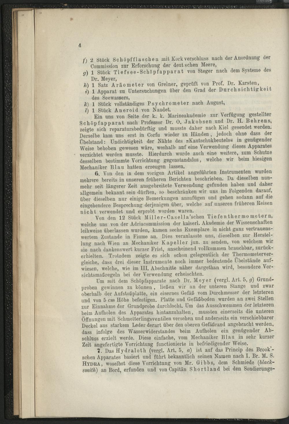 Physikalische Untersuchungen im adriatischen und sicilisch-jonischen Meere während des Sommers 1880 an Bord des Dampfers "Hertha", Jacht Sr. Durchl. des regierenden Fürsten Johannes von und zu Liechtenstein : sammt Untersuchungen über die heimgebrachten Grundproben von A. Mojsisovics und G. Marktauner ; mit 3 Fig. im Text u. 6 Taf / durchgef. u. bearb. von Julius Wolf u. Josef Luksch