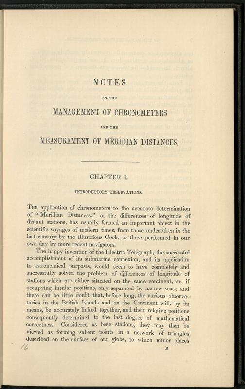 Notes on the management of chronometers [...] Chapter I.