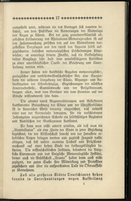 Stimmen der Presse über die Urania-Säule / Urania-Uhren- und Säulen-Commandit-Gesellschaft