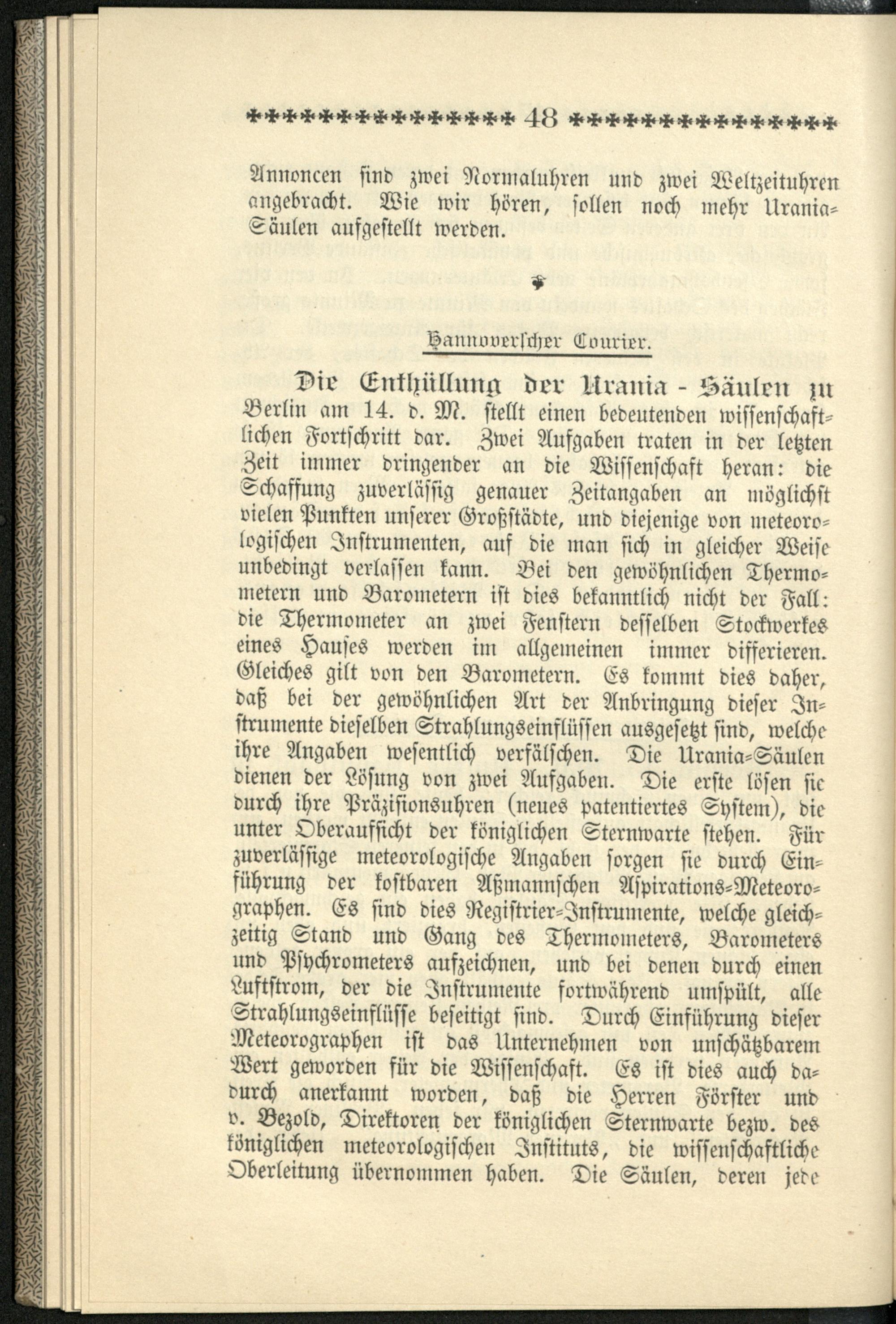 Stimmen der Presse über die Urania-Säule / Urania-Uhren- und Säulen-Commandit-Gesellschaft