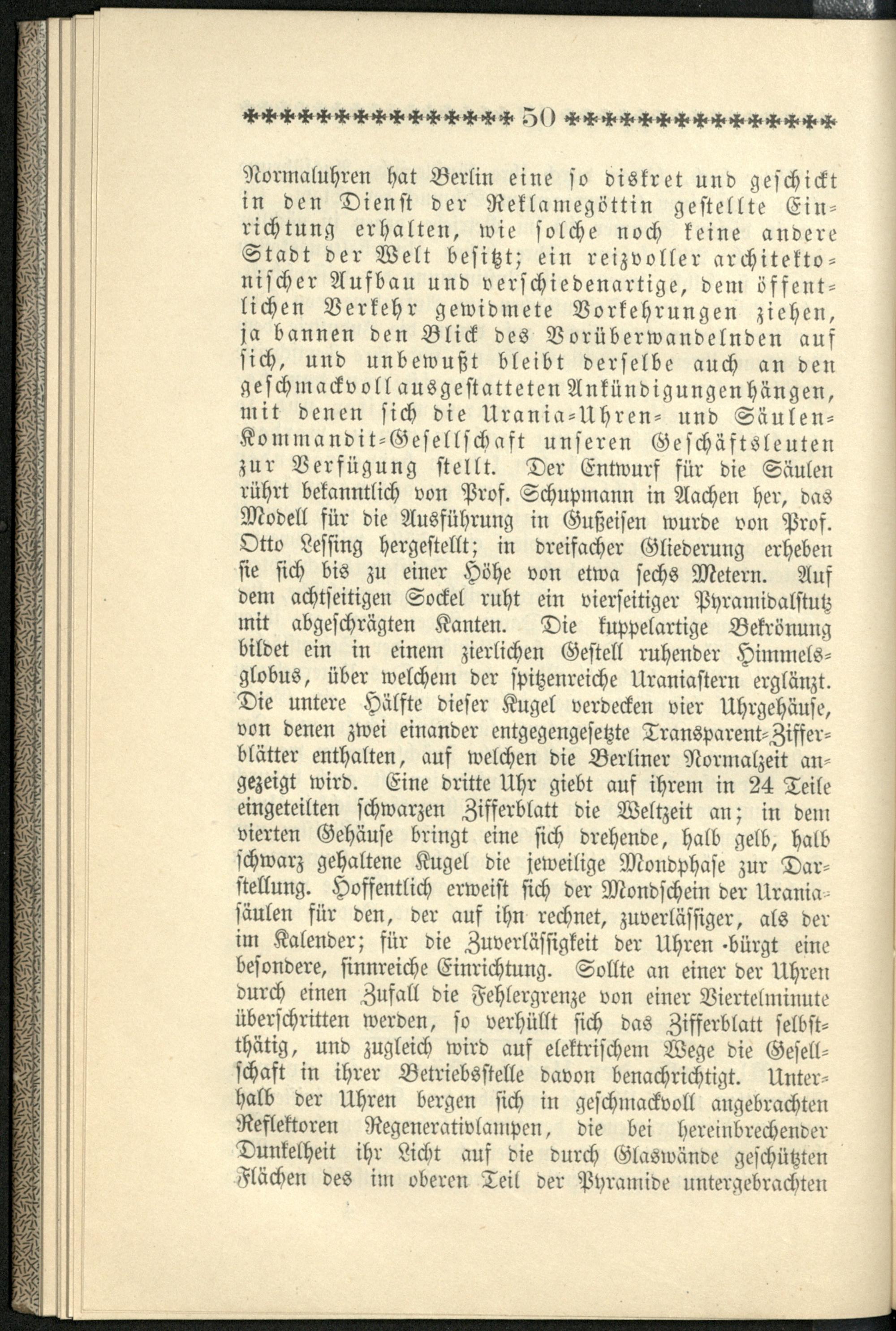 Stimmen der Presse über die Urania-Säule / Urania-Uhren- und Säulen-Commandit-Gesellschaft