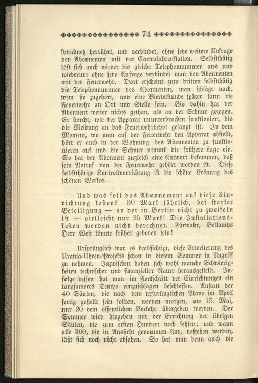 Stimmen der Presse über die Urania-Säule / Urania-Uhren- und Säulen-Commandit-Gesellschaft