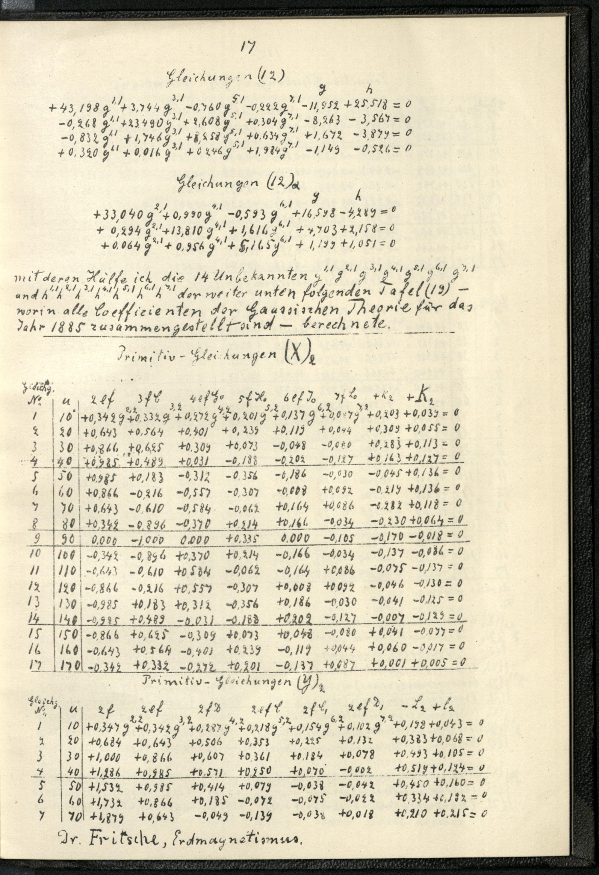 Über die Bestimmung der Coefficienten der Gaussischen allgemeinen Theorie des Erdmagnetismus für das Jahr 1885 und über den Zusammenhang der drei erdmagnetischen Elemente untereinander / von H. Fritsche